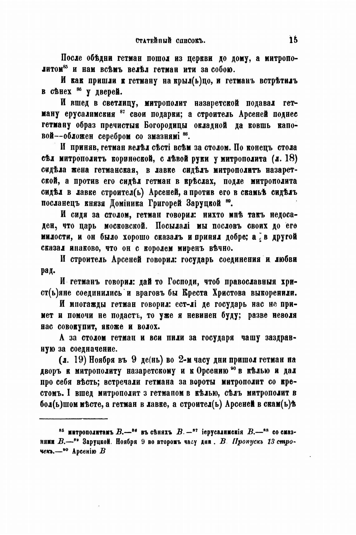 (и. 19) Ноября въ 9 де(нь) во 2-м часу дни приши гетман на