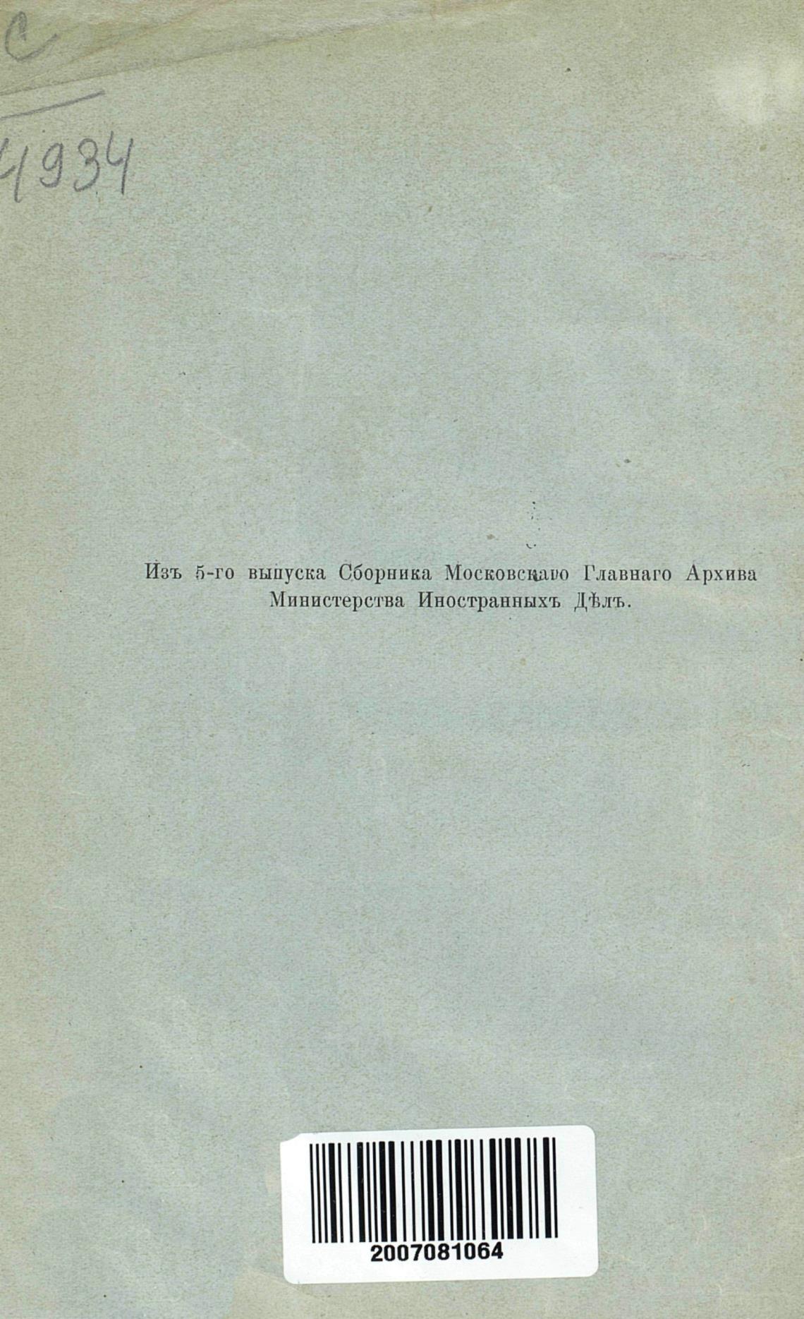 Изъ 5-го выпуска Сборника Московсыаро Главнаго Архива