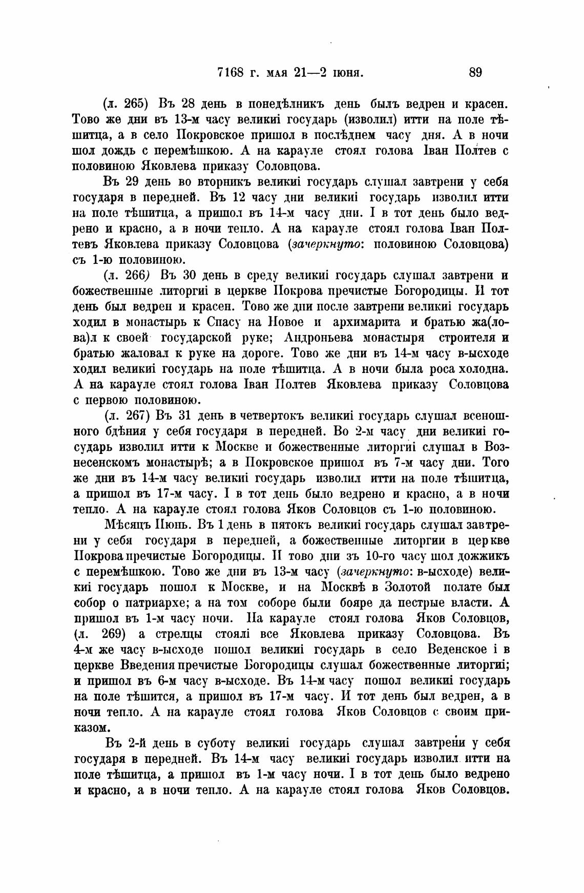 (л. 269) а стре.щы все Яковлева приказу Соловцова. Въ