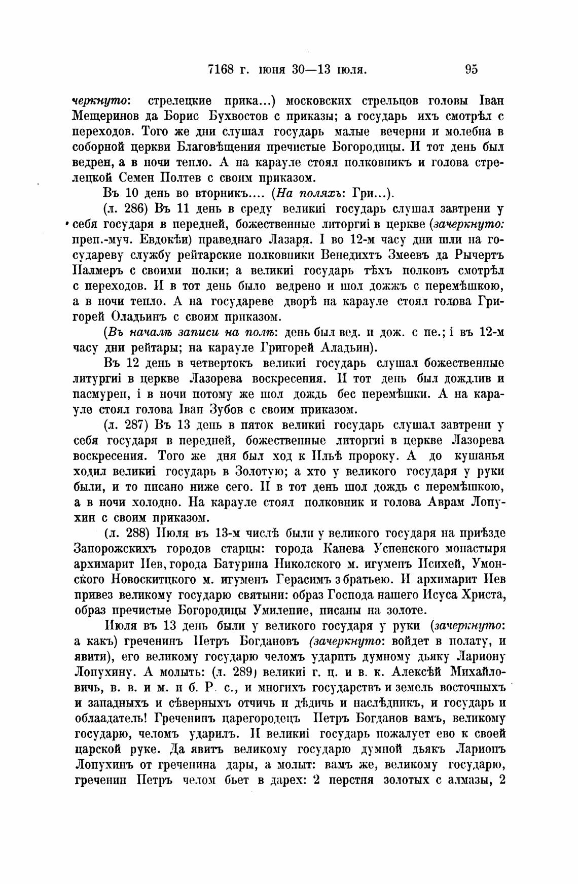 (л. 286) Въ 11 день в среду государь слушал завтрени у