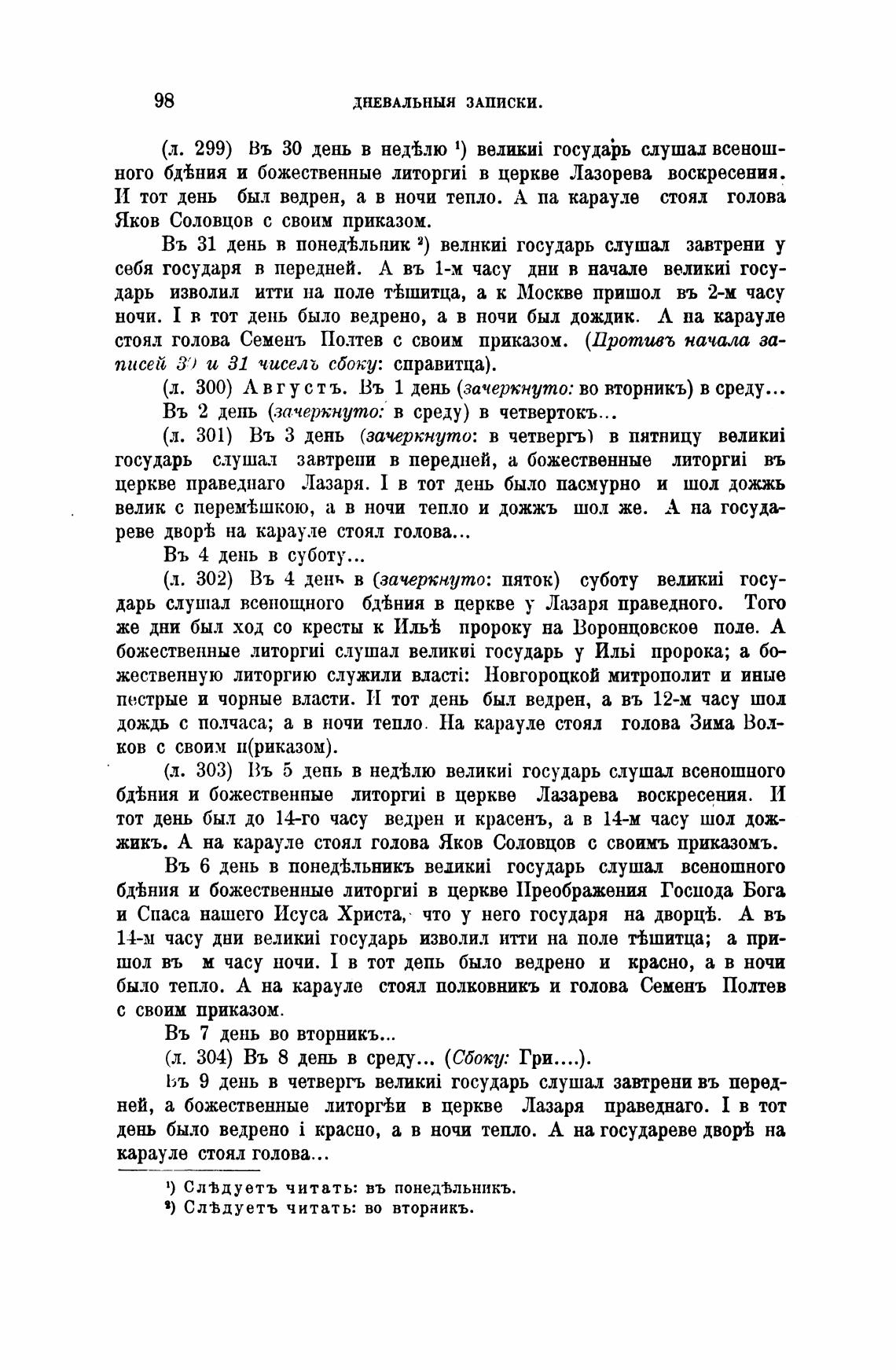 1) Сл%дуетъ читать: въ понед%льникъ.