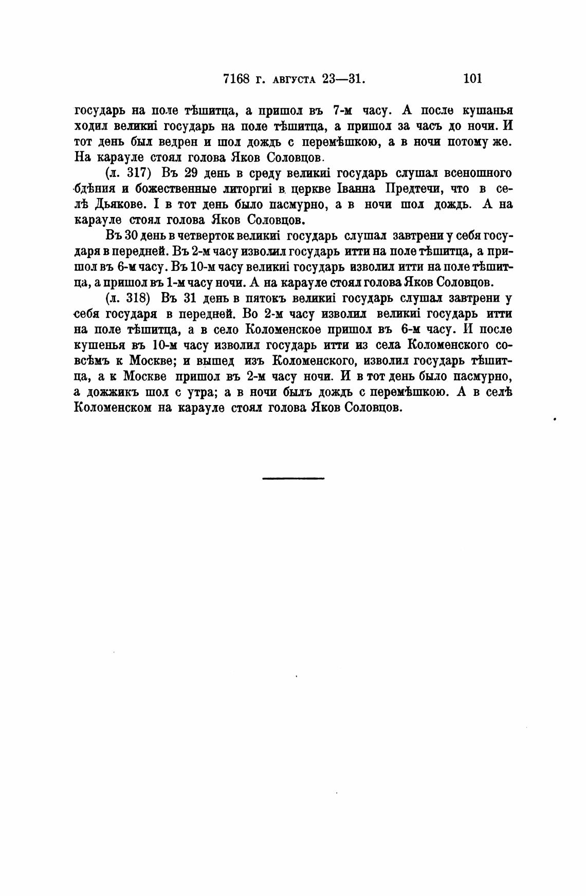 (л. 317) Въ 29 день в среду государь слуша.л всеношного
