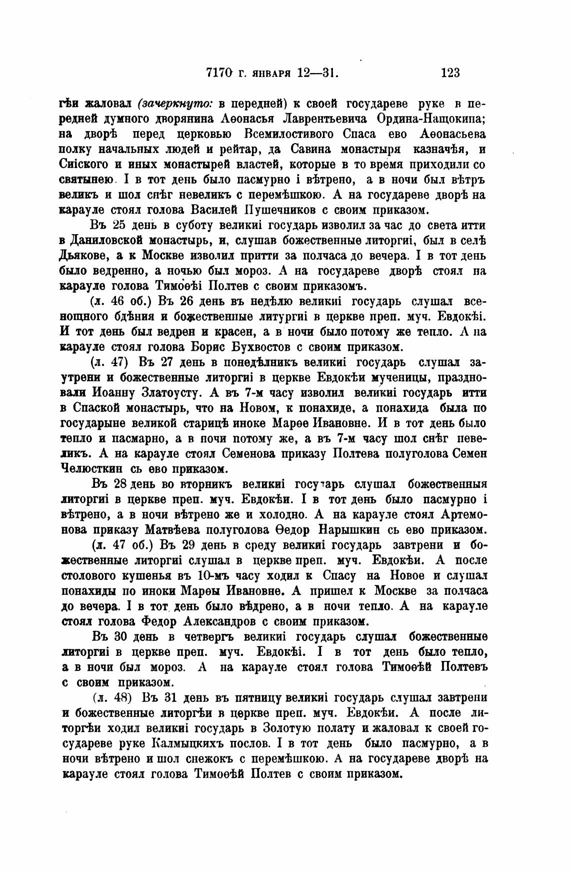 (л. 47 об.) Въ 29 день в среду государь завтрени и 60-