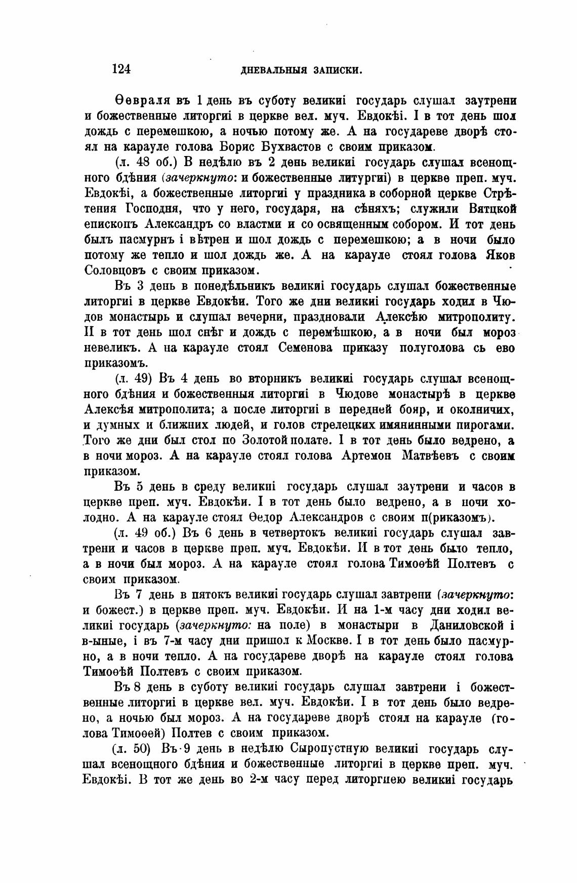 (л. 49) Въ 4 день во вторникъ государь слушал всенощ-