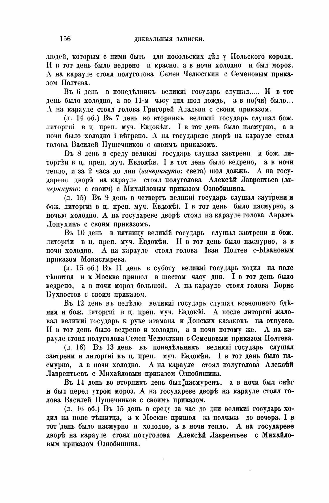 ночью холодно. Л на государеве двор± стоял на карауле голова Лврамъ