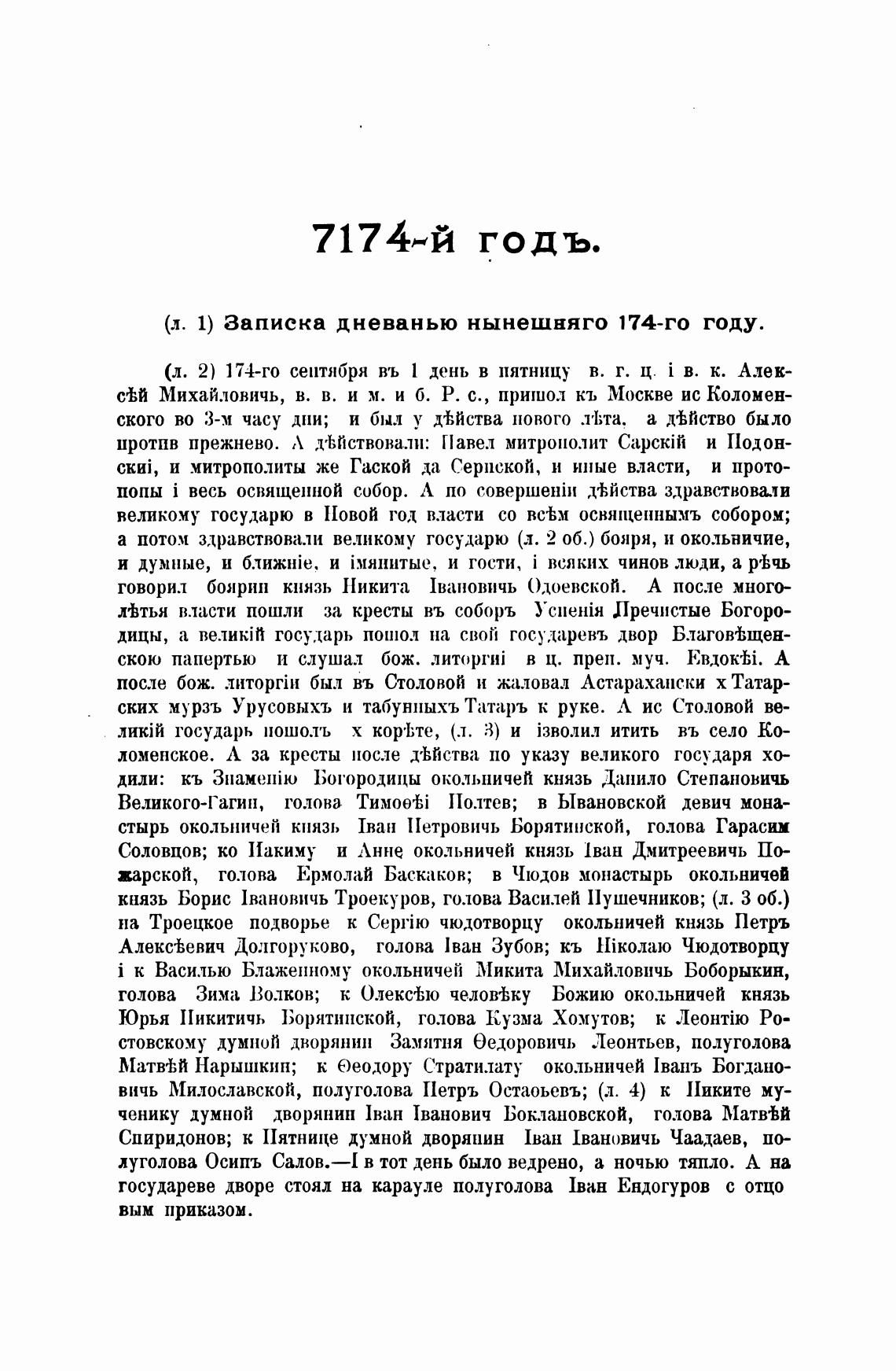 (л. 1) Записка дневанью нынешняго 174-го году.