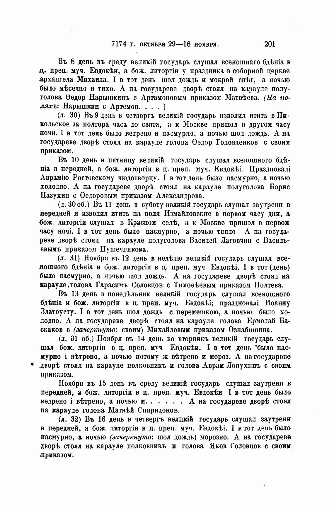 ф. 31 об.) Ноября въ 14 день во вторникъ государь слу-