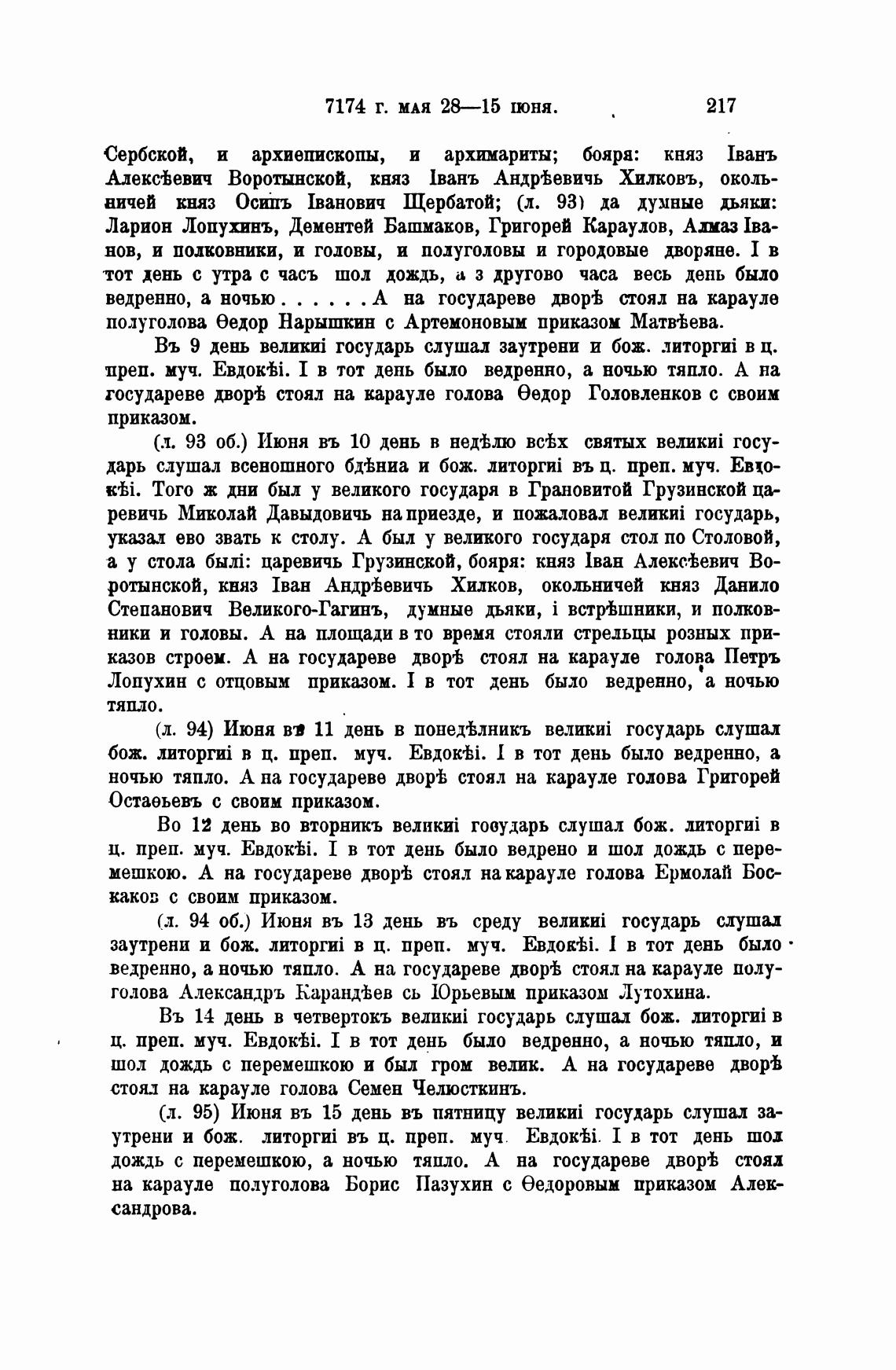 (л. 94) Июня вв 11 день в понед±лникъ государь слушал