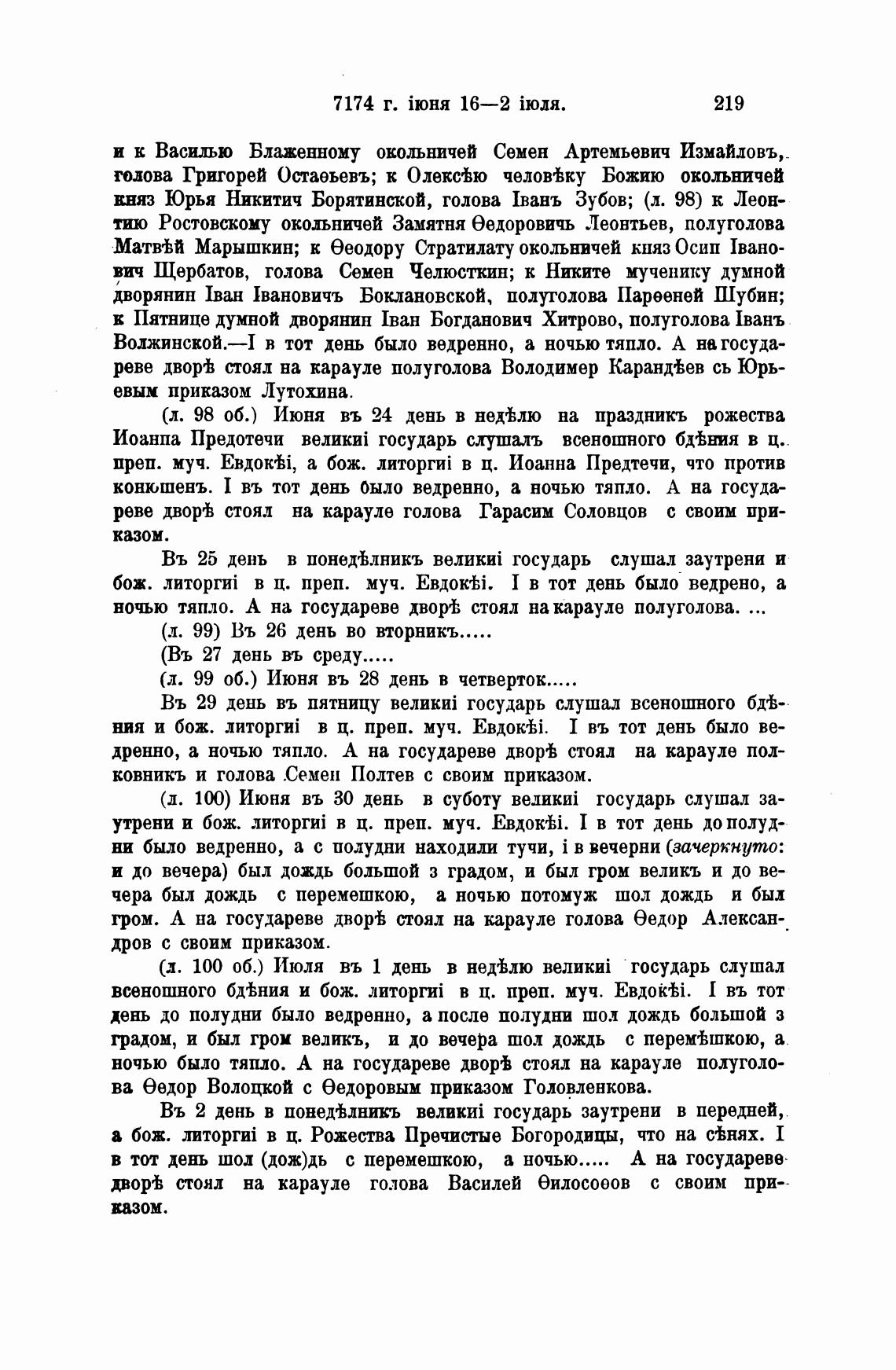 (д. 100 об.) Июля въ 1 день в нед±лю государь слушал
