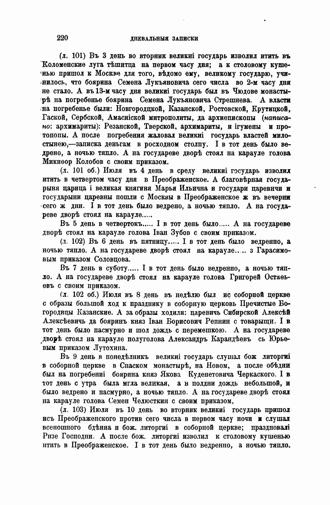 (л. 101) Въ З день во вторник государь изволил итить въ