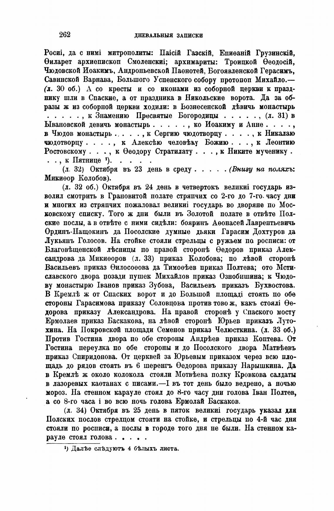 1) ДалЪе сл%дують 4 б%лыхъ листа.
