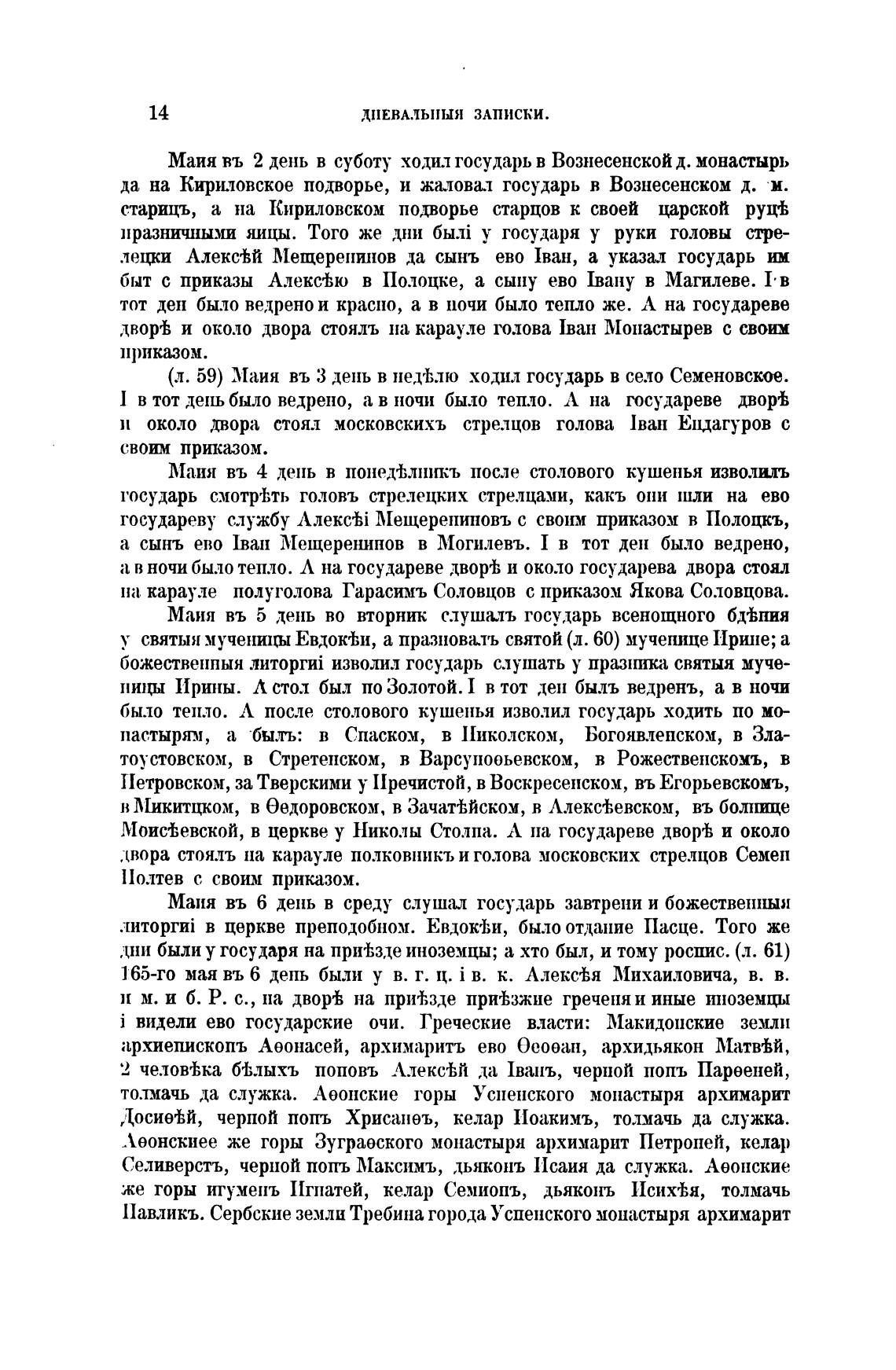 (л. 59) Маия въ З день в недеђ.тю ходил государь в село Семеновское.