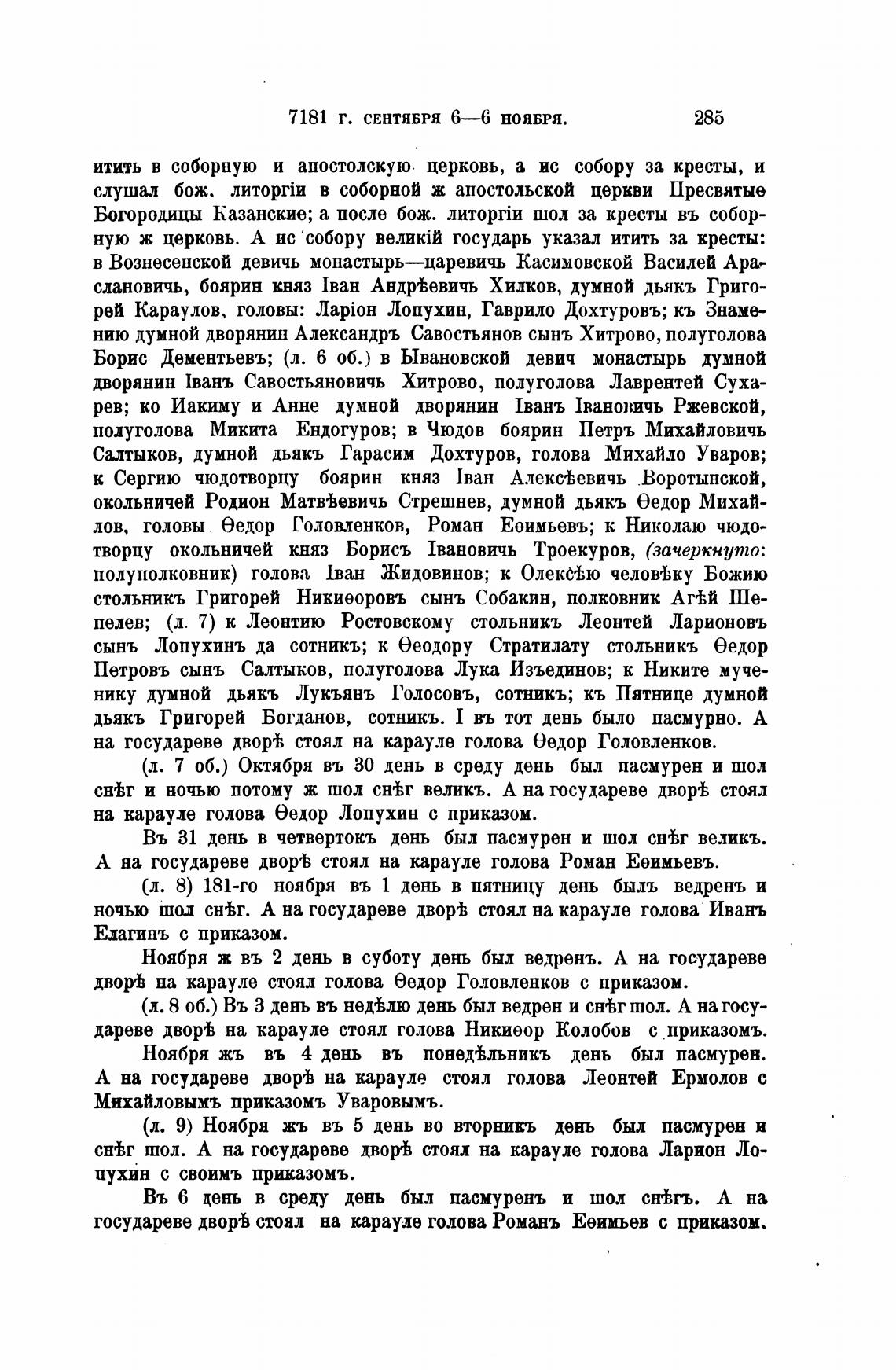 (л. 8) 181-го ноября въ 1 день в пятницу день быль ведренъ и