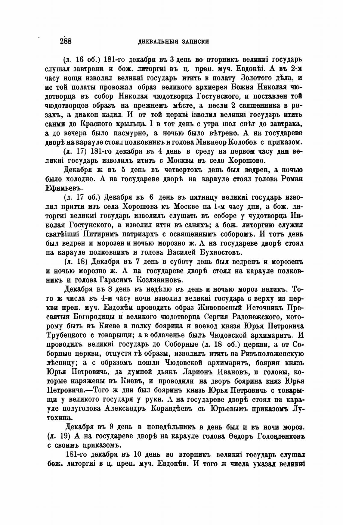 был ведрен и морозен и ночью морозно ж. А на государеве двор'Ь стоял