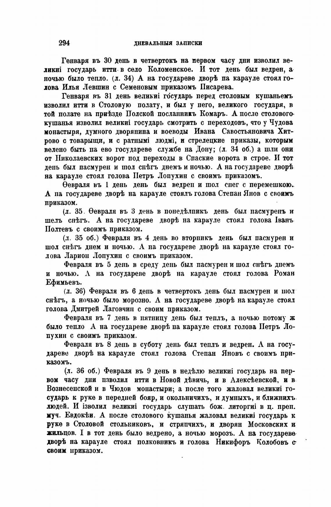 ночью было тепло. (л. 34) А на государеве двор± па карауле стоял го-