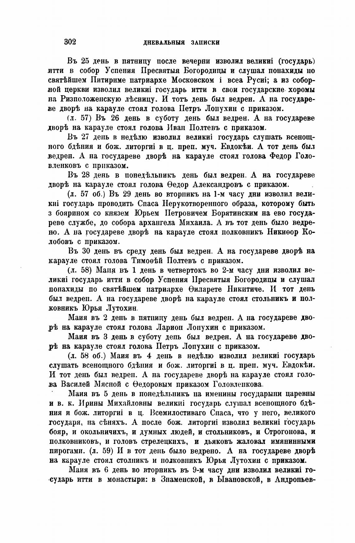 И тот день был ведреп. А на государеве дворгЬ на карауле стоял голо-
