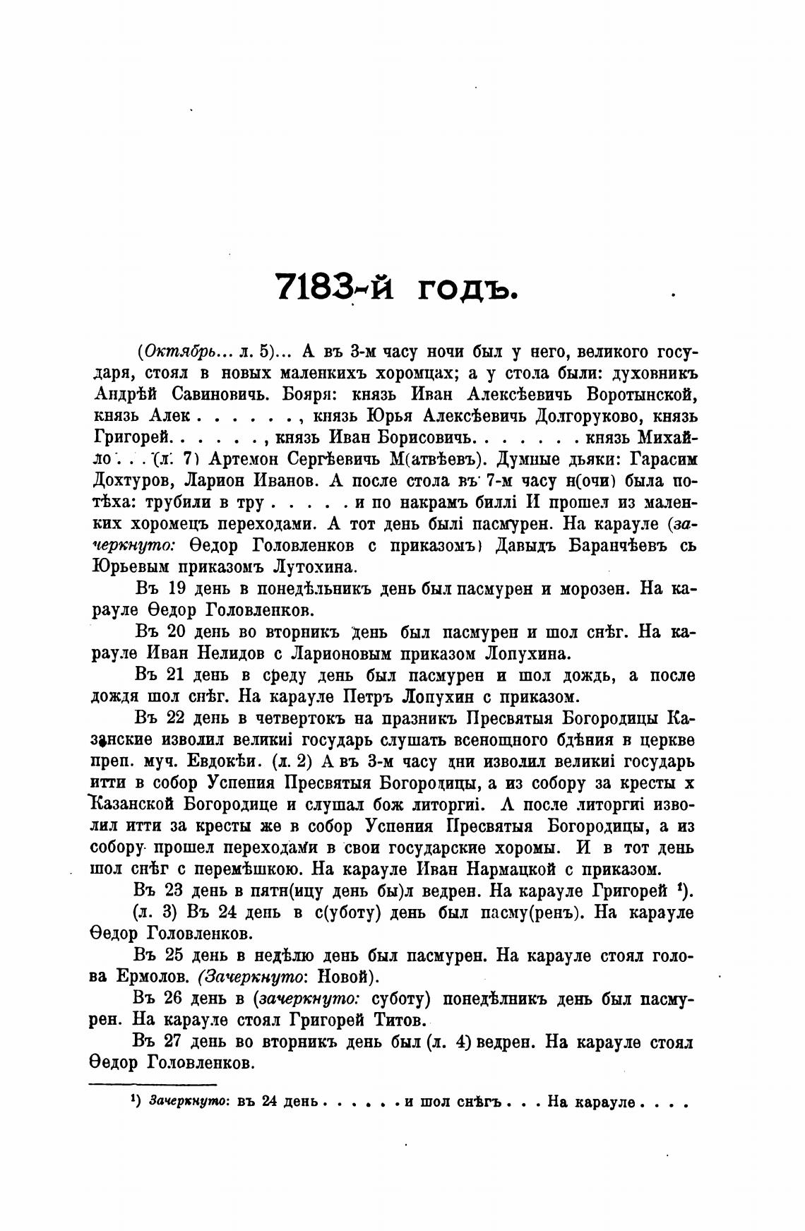 Въ 27 день во вторникъ день был (л. 4) ведрен. На карауле стоял