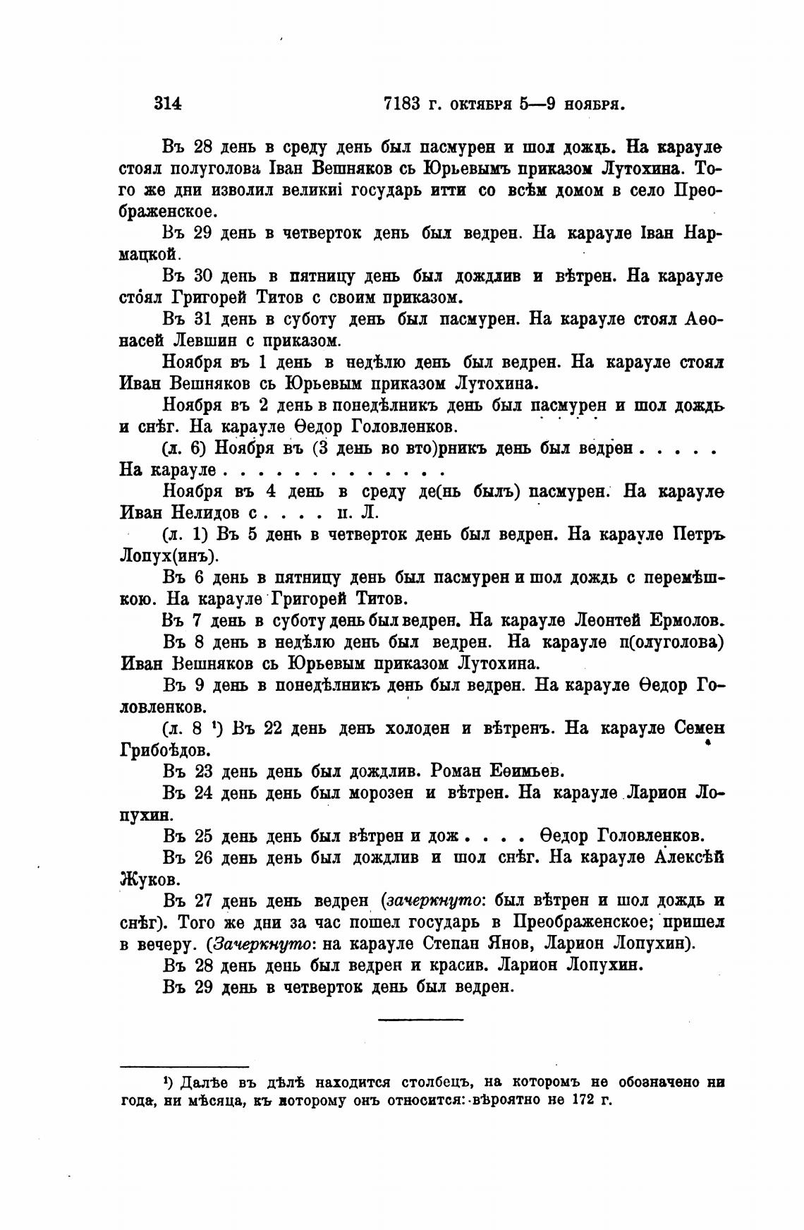 в вечеру. (Зачеркнуто: на карауле Степан Янов, Ларион Лопухин).
