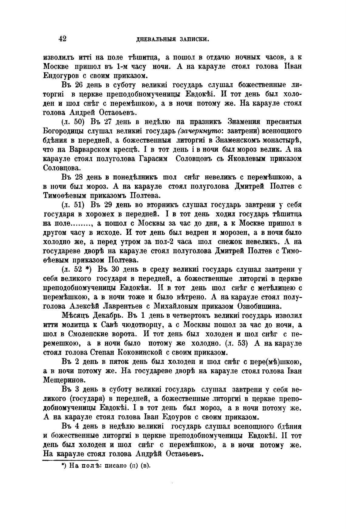 ден и шол СН'Ьг с перемТшкою, а в ночи потому же. На карауле стоял