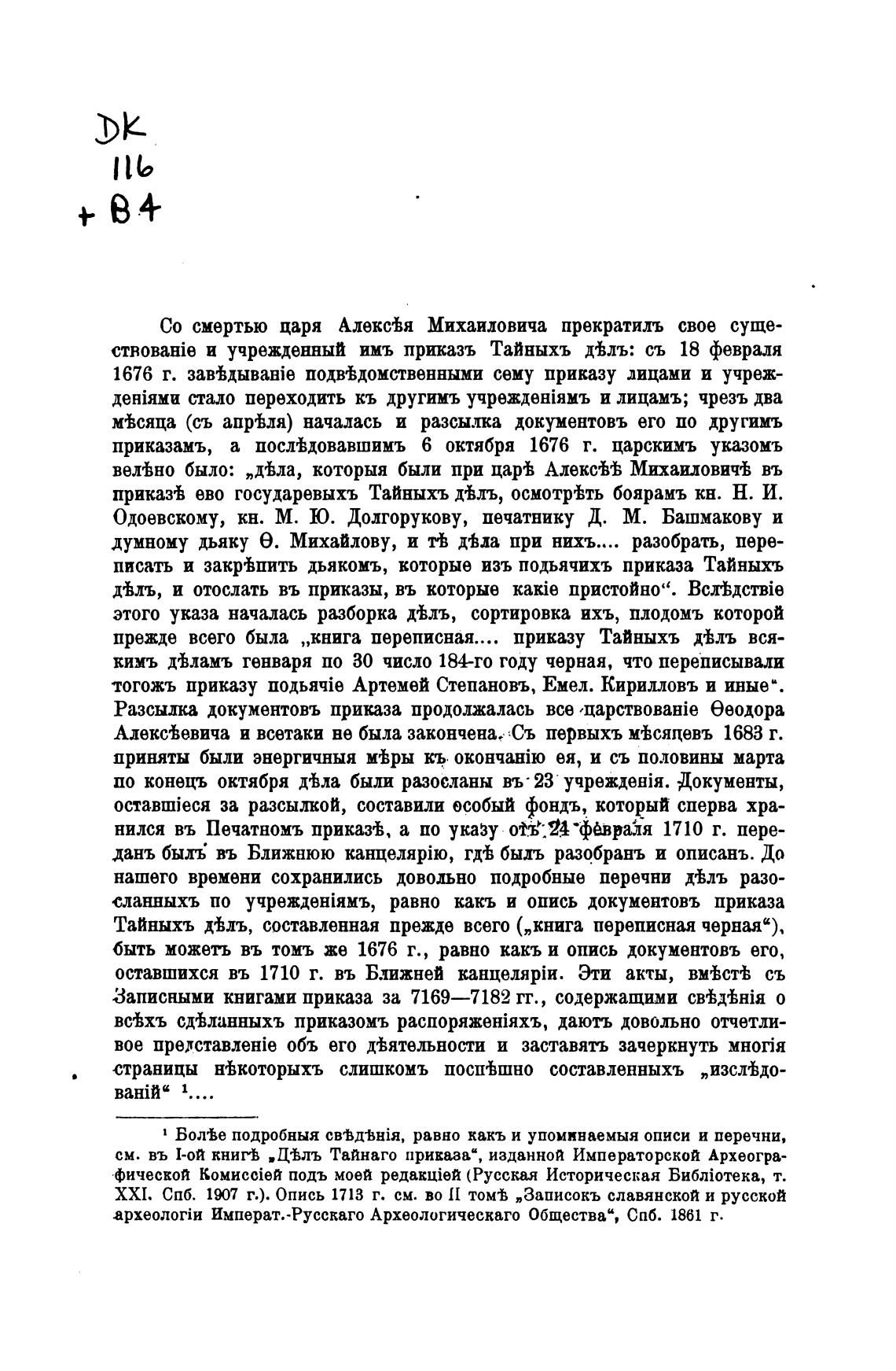 прежде всего была „книга переписная.... приказу Тайныхъ д±лъ вся-
