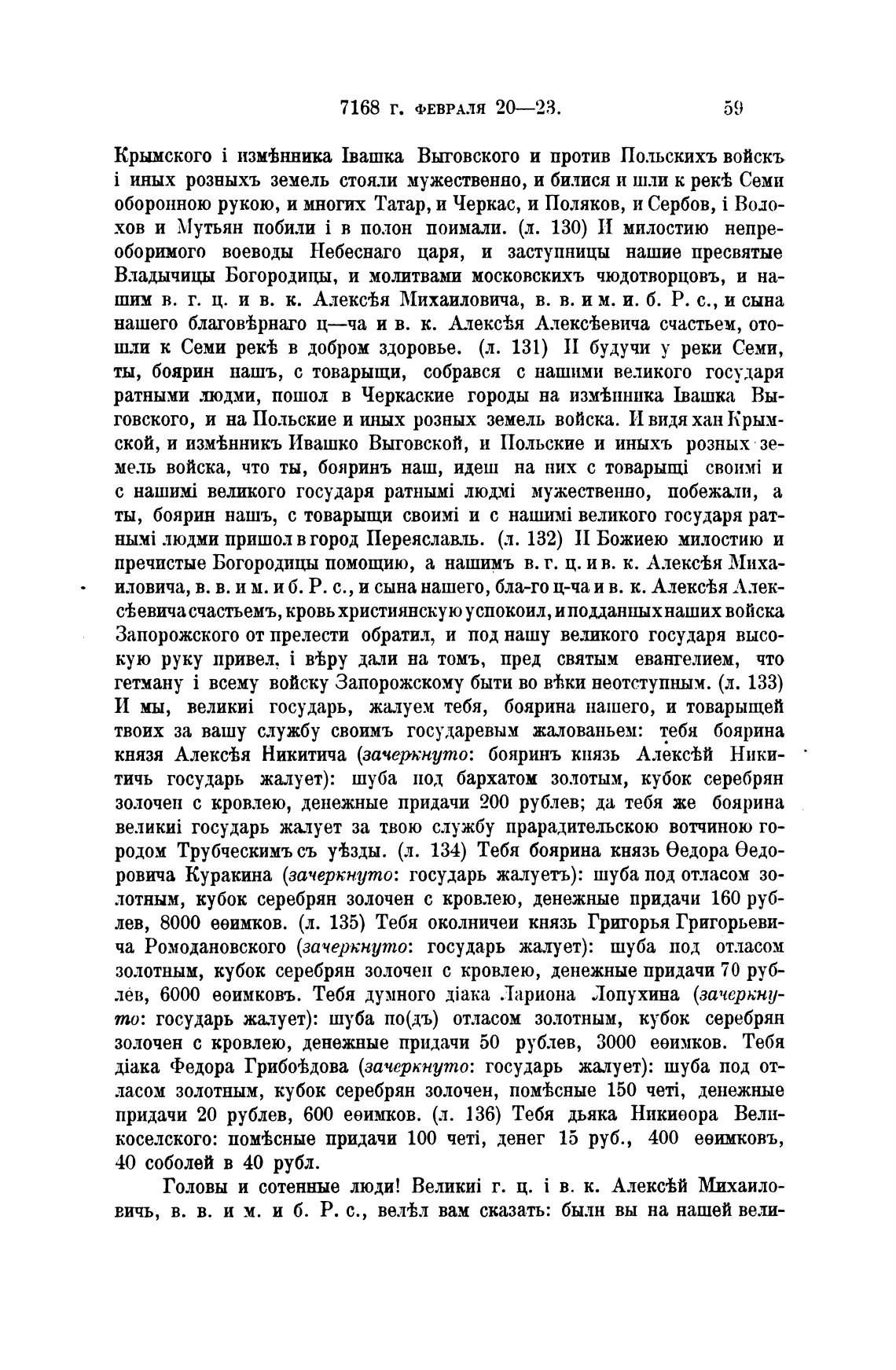 лев, 8000 ееимков. (л. 135) Тебя околничеи князь Григорья Григорьеви-