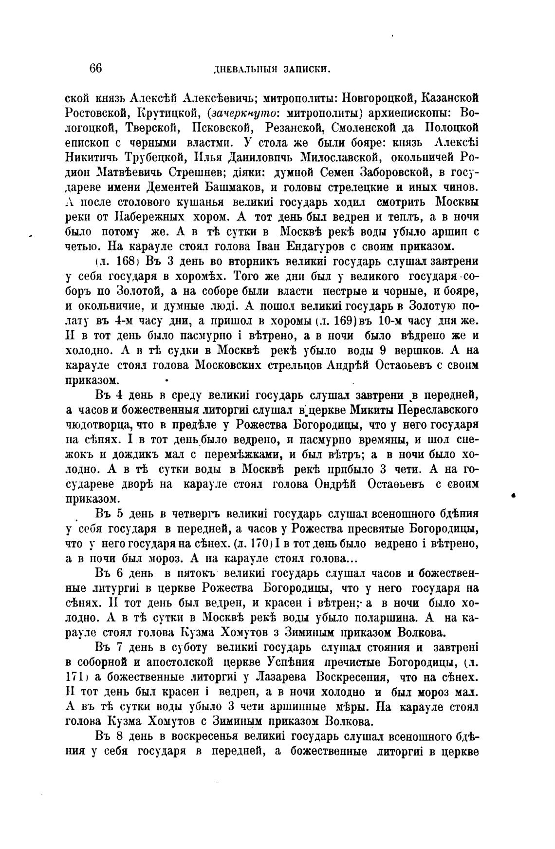 что у него государя на с±нех. (л. 170)I в тот день было ведрено i йтрено,