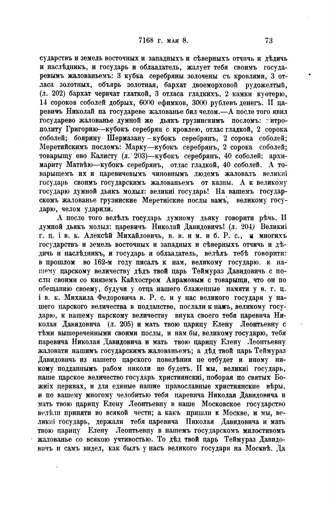 думной дьякъ молыл: царевичъ Николай Давидовичъ! (л. 204)