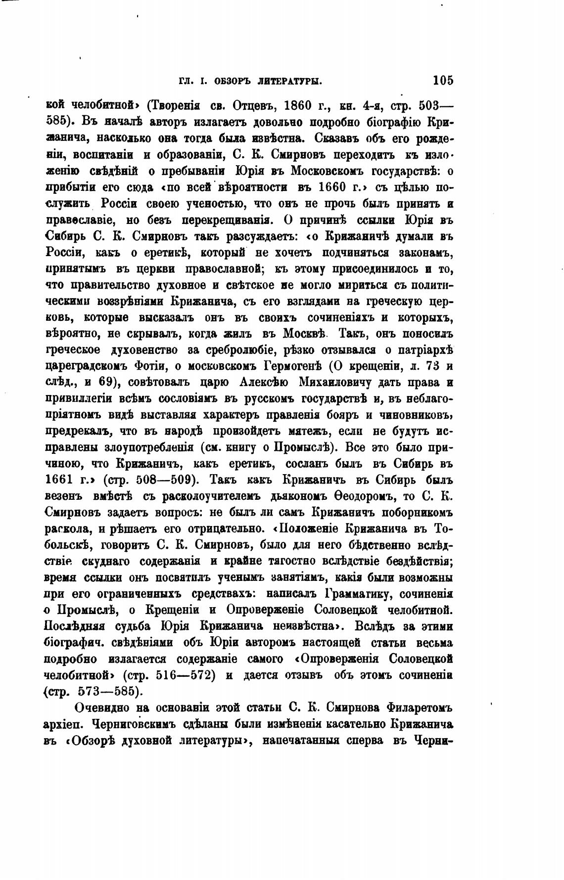 Сабирь С. К. Смирновъ такъ рысуждаеть: «о Крижаничгь думали въ