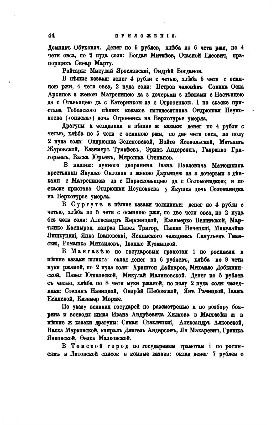 п•Ьшие казаки шляхта: оклад денег по 6 рублевъ, хл%ба по 9 чети