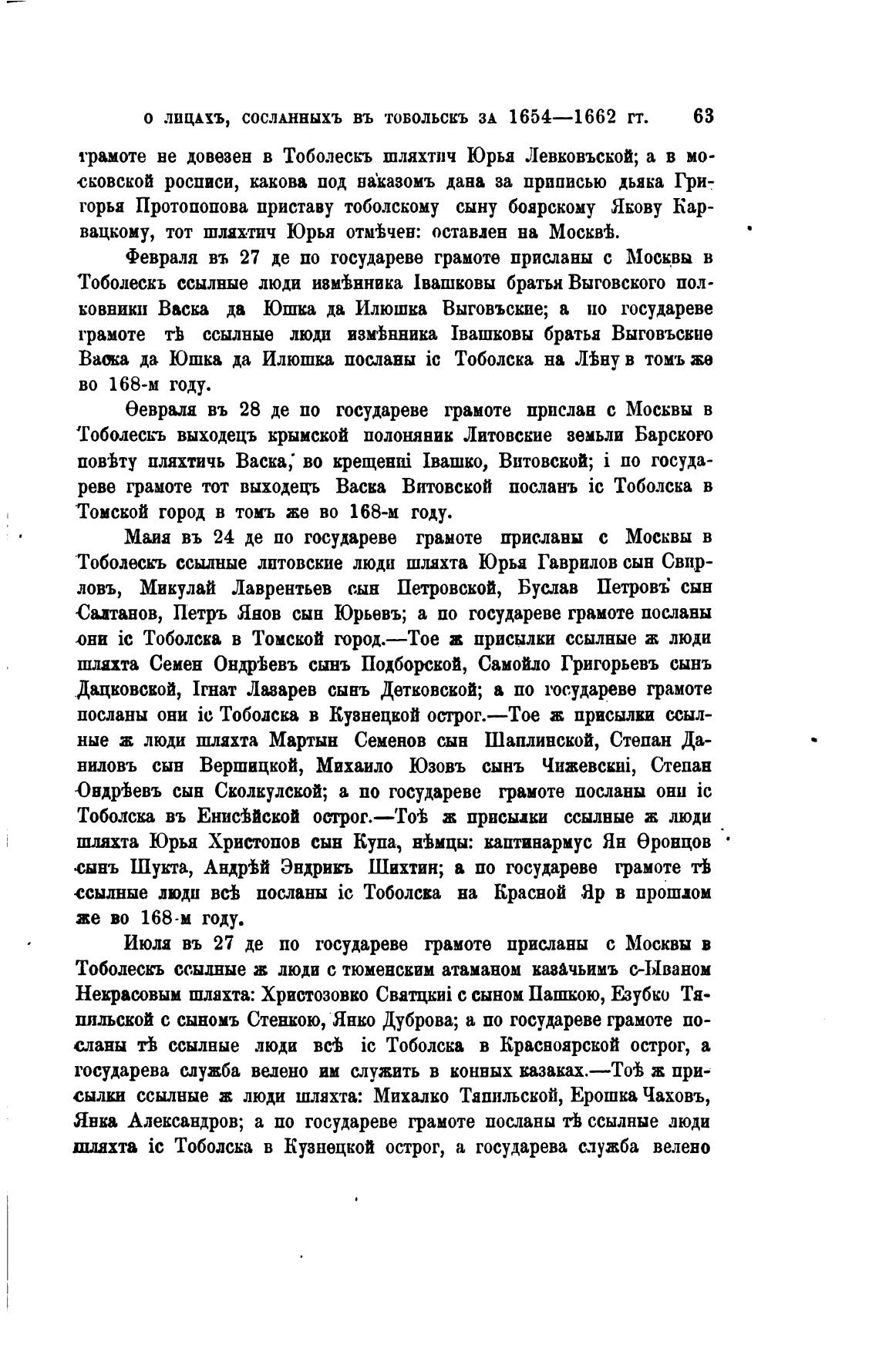 О лицЖхъ, СОСЛАННЫХЪ ВЪ ТОБОЛЬСКЪ ЗА 1654—1662 ТТ. 63