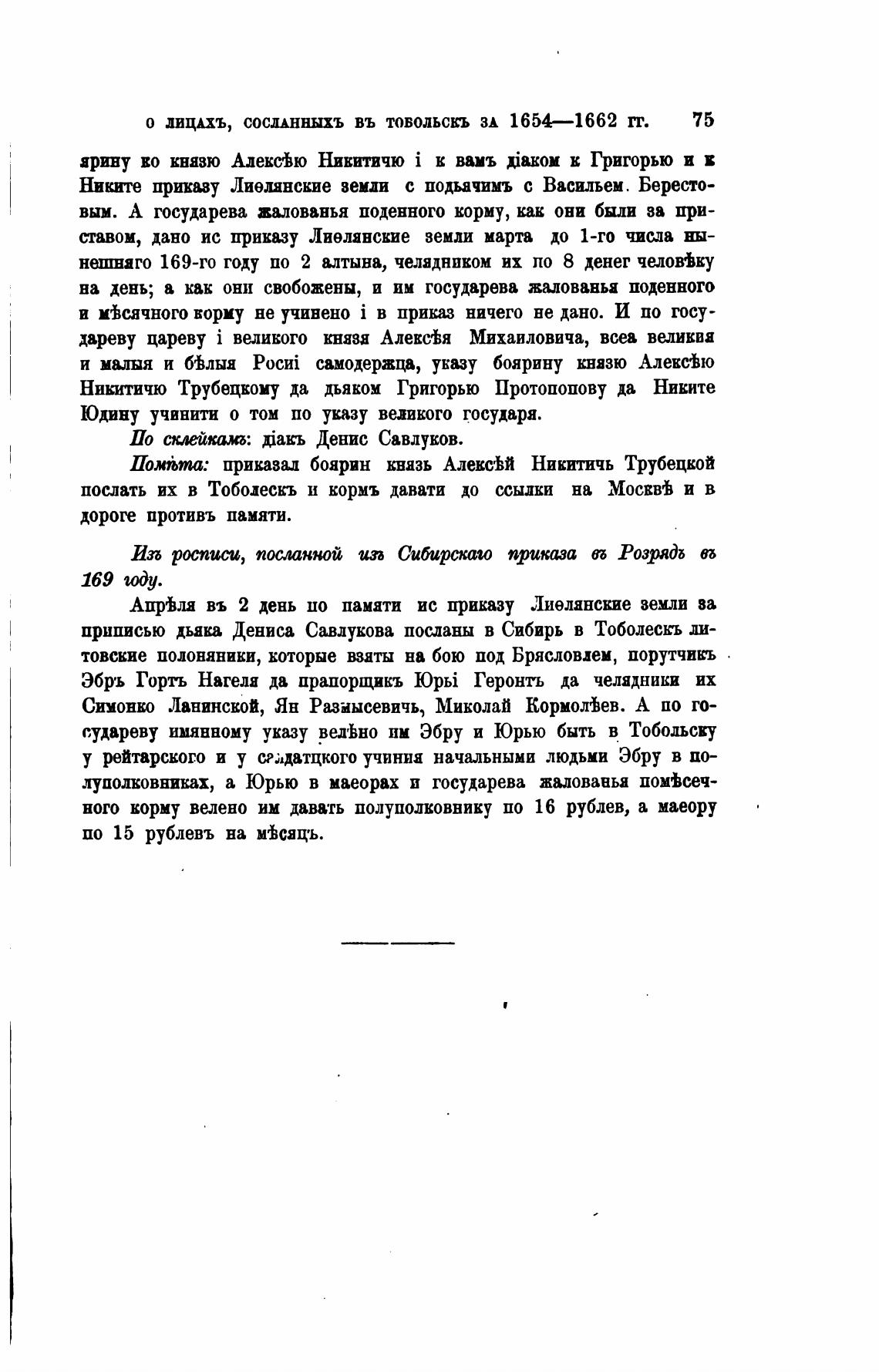 О ДИЦАХЪ, СОСДАННЫХЪ ВЪ ТОБОЛЬСКЬ ЗА 1654—1662 ГГ. 75