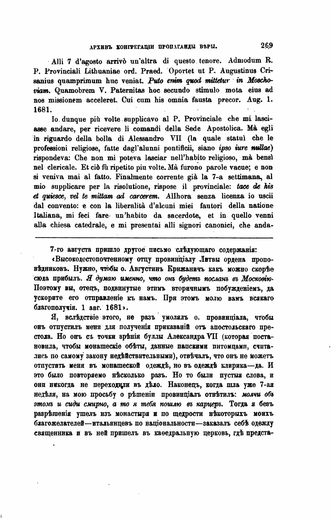 в±днвковъ. Нужно, чтббы о. Августинъ Крижаничъ какъ можно скор%е