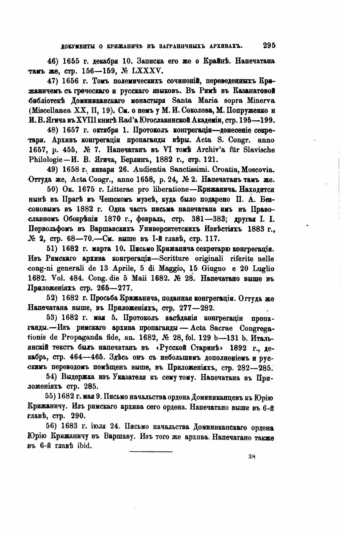 ДОКУМЕНТЫ О КРИЖАНИЧВ ВЪ ЗАГРАНИЧНЫХЪ АРХИВАХЪ.