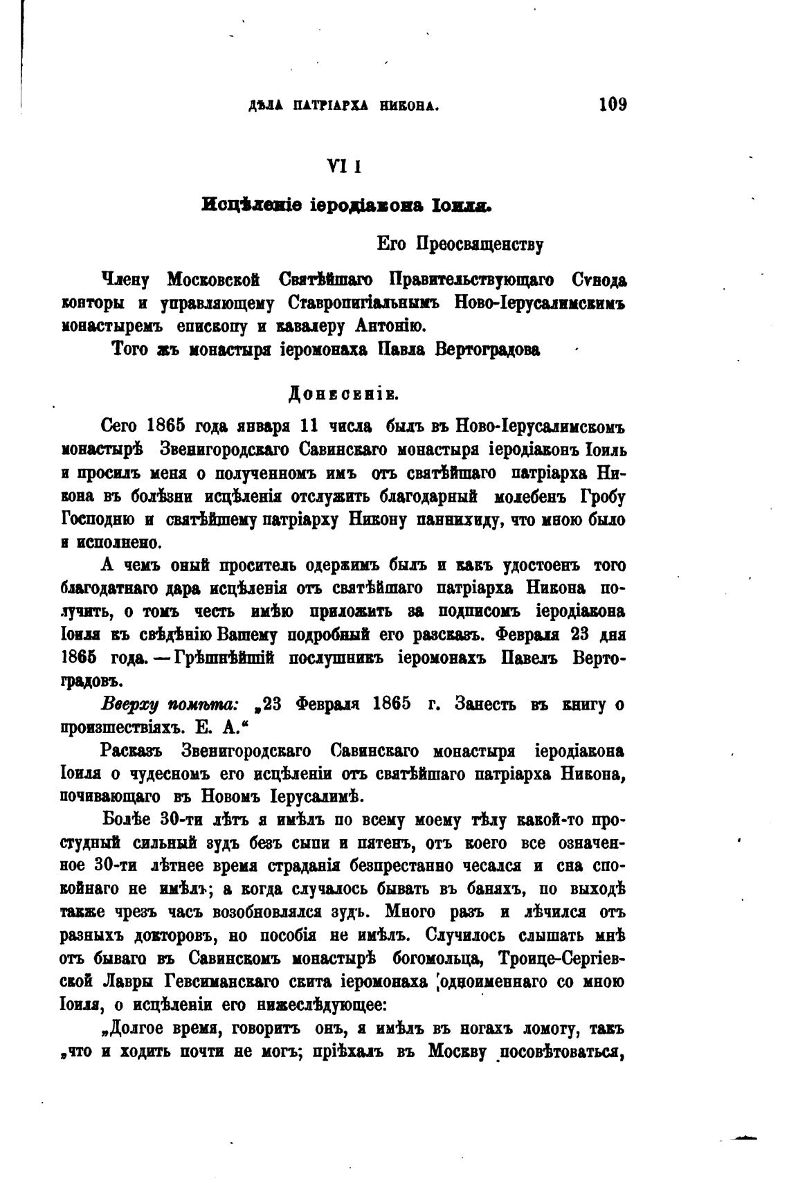 Сего 1865 года авваря 11 числа быдъ въ Ново-иеруса.аиисвомъ
