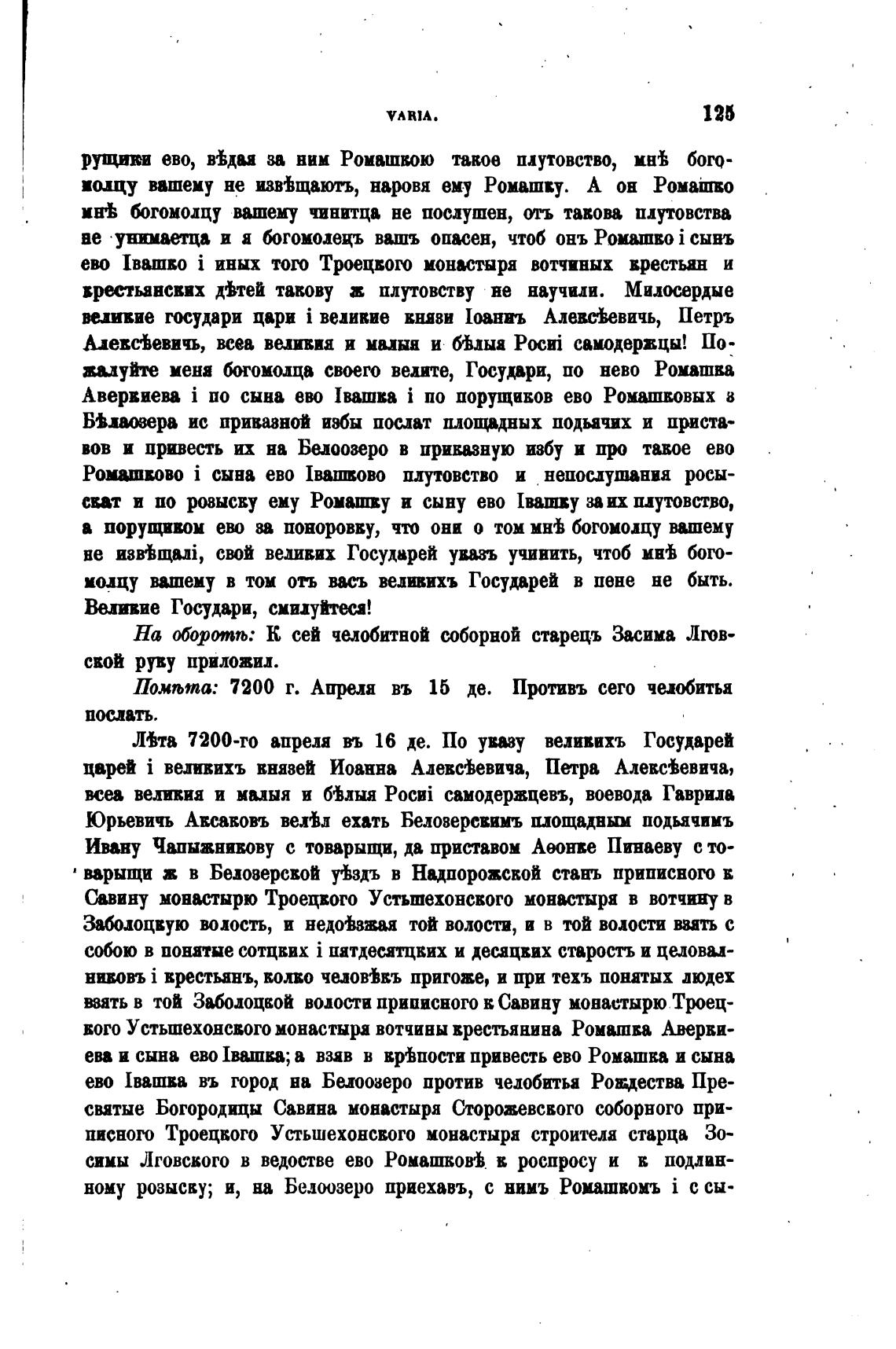 ево [вашва въ город на Белозеро против челобитьа Рочества Пре-