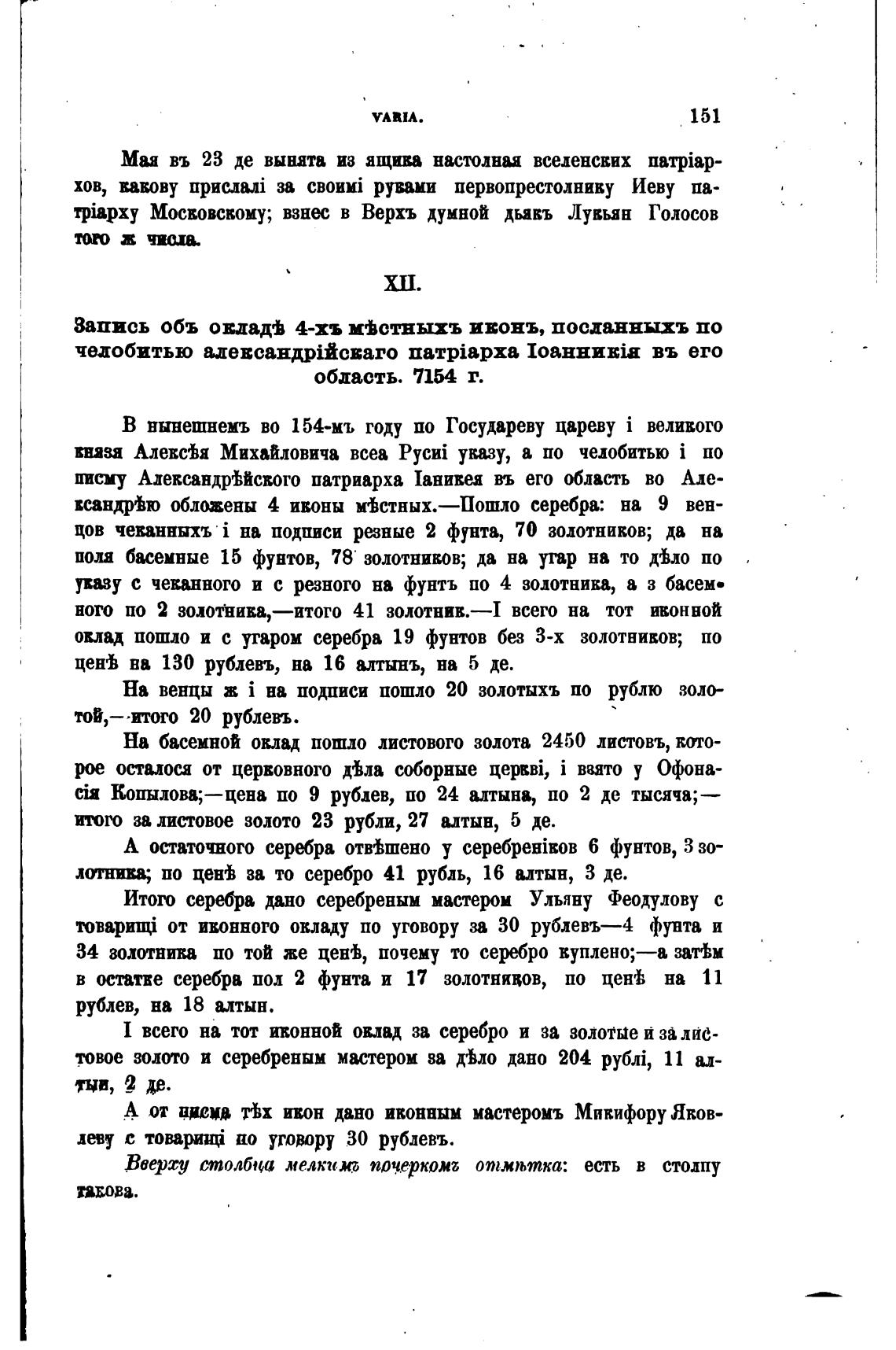 оклад пошло и с угаром серебра 19 фунтов без 3-х золотников; по