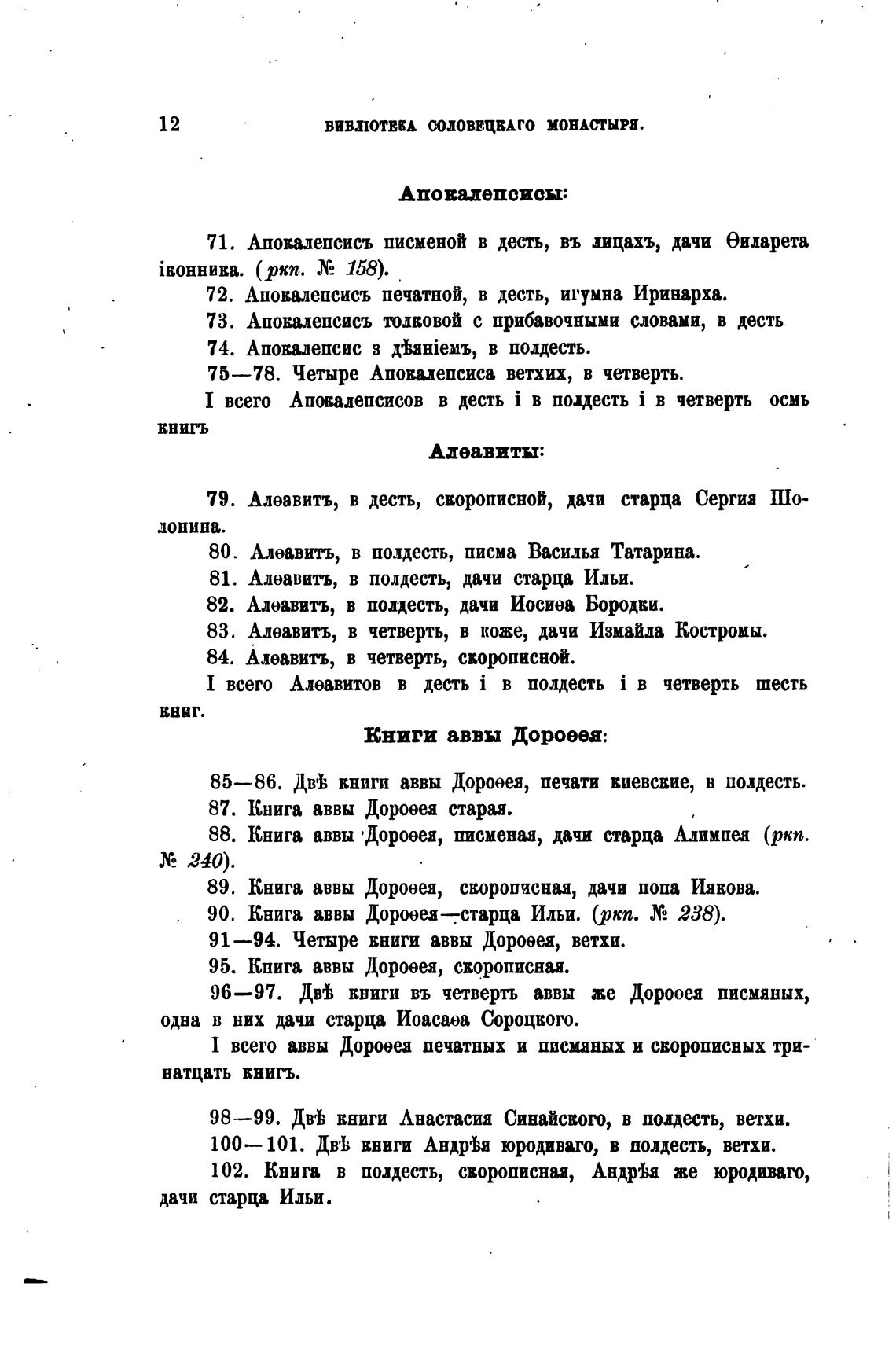 Книга аввы Дороееа=старца Ильи. (РКП. Х2 238).