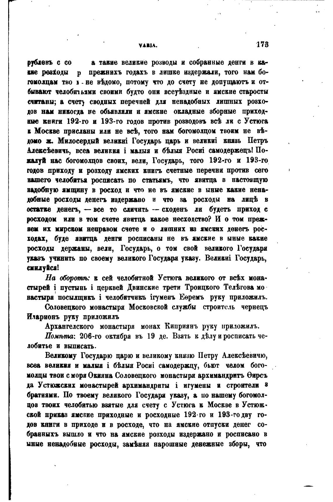 Архангелсвого монастыря монах Киприянъ руку приложилъ.