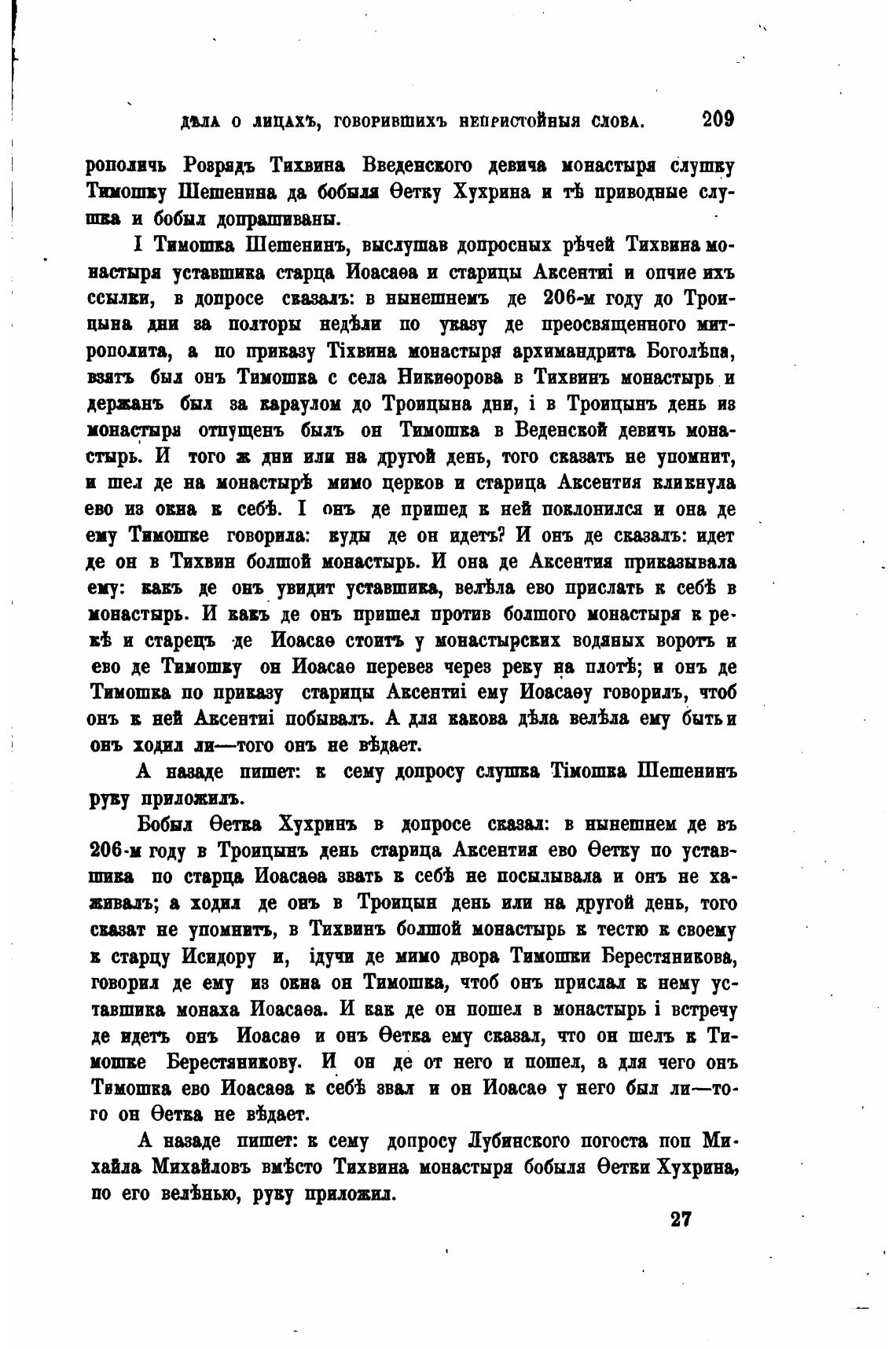 1 Тимошка Шешенинъ, выслушав допросных фчей Тихвина мо-