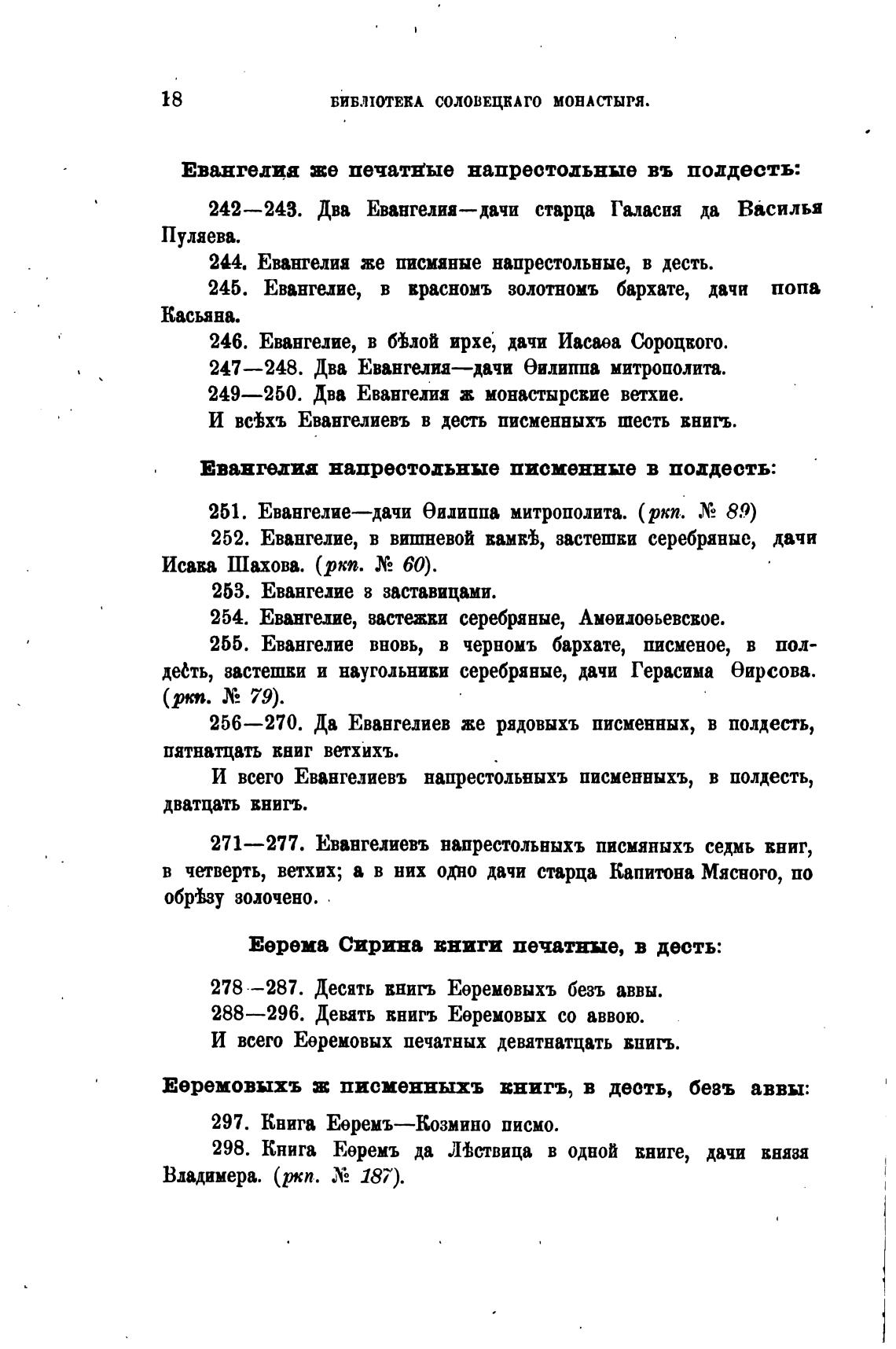 256—270. Да Евангедиев же рядовыхъ писиенных, в полдесть,