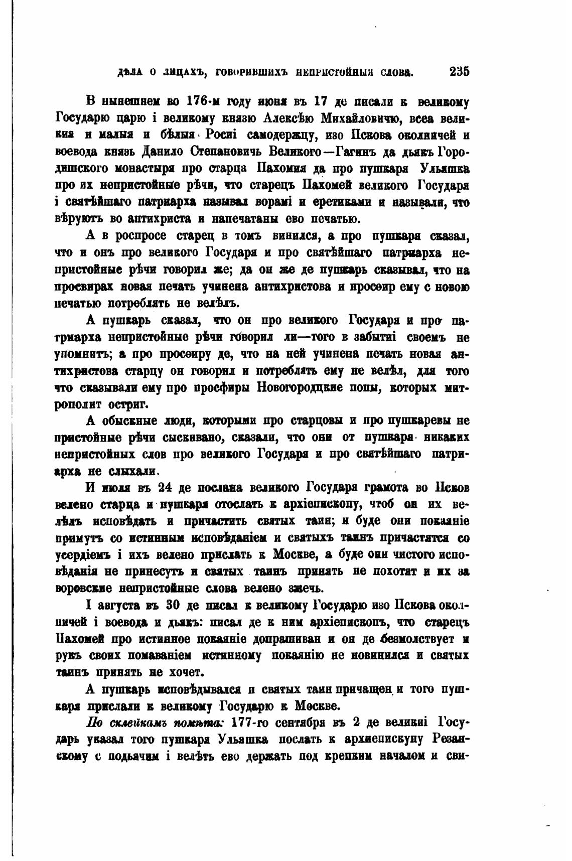 непристойных слов про вехивого Государя и пр святЬйшаго :штри-