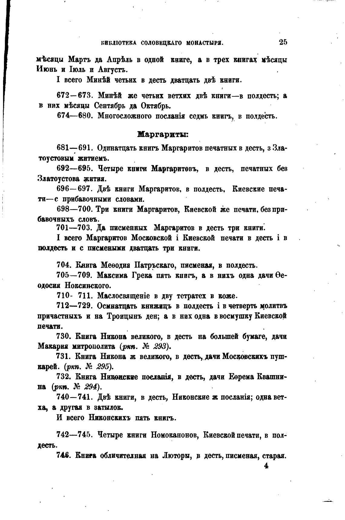 692—695. Четыре Маргаритовъ, в десть, печатных бев