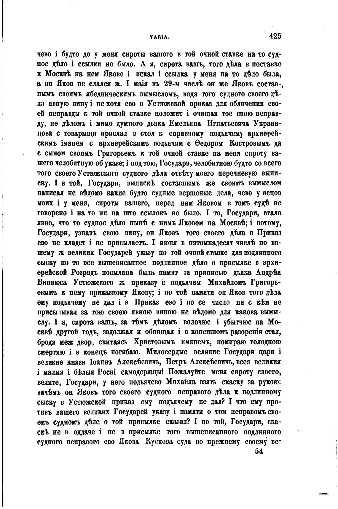 i малыя i Њшя самодержцы! Пожалуйте меня сироту своего,