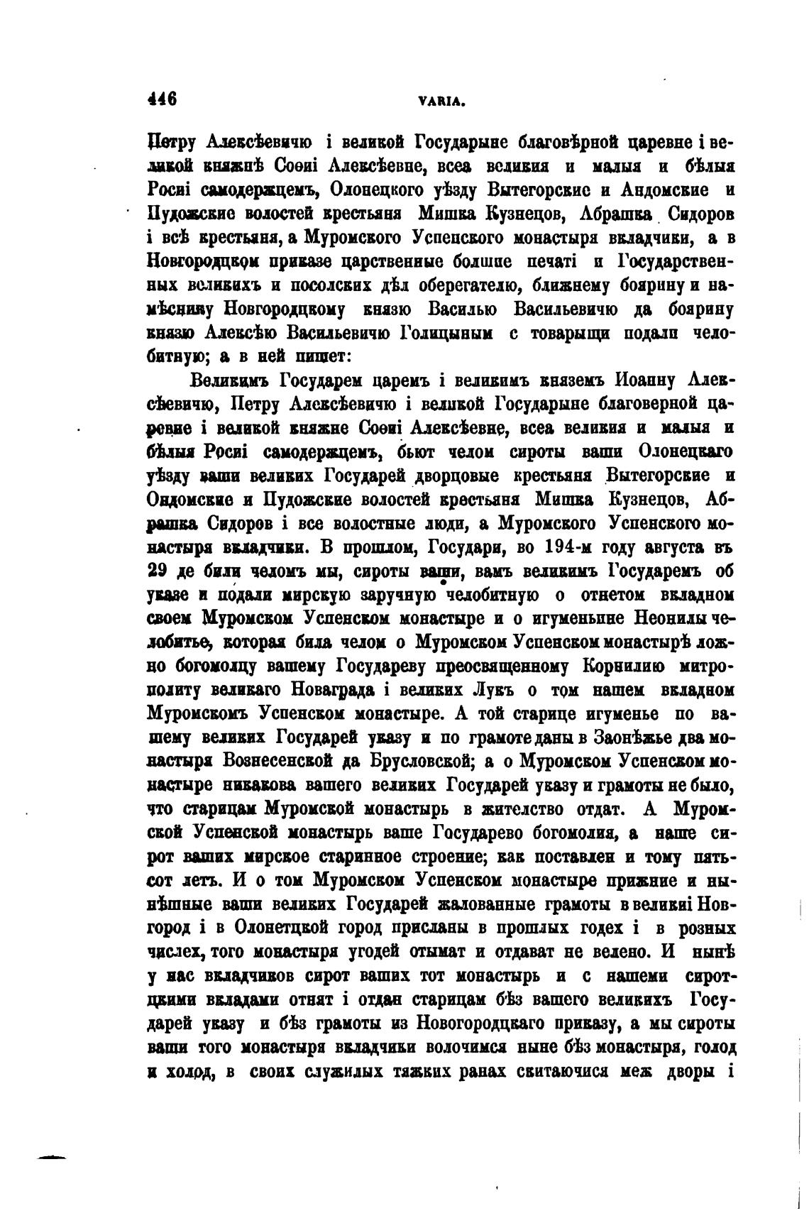 у±зду ваши ведивих Государей дворцовые крестьяна Вытегорсвие и