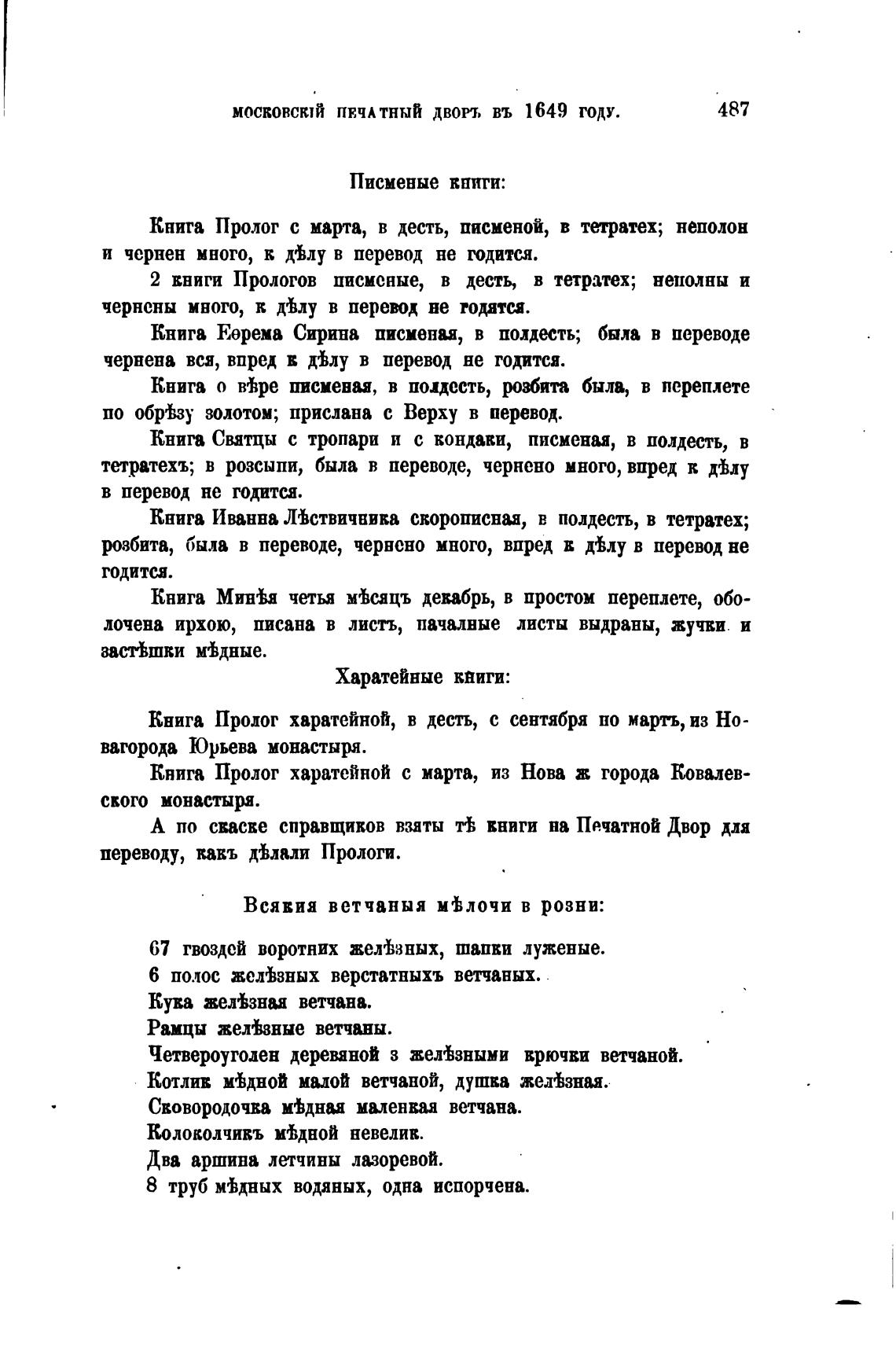 Книга Пролог харатейной, в десть, с сентября но марть, из Но-