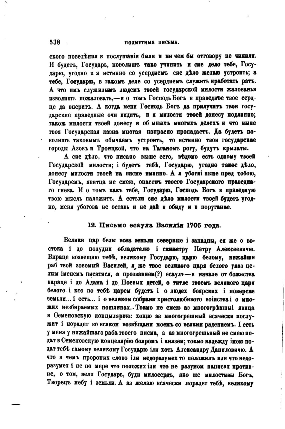 12. Письмо есаула ВасиМа 1705 года.