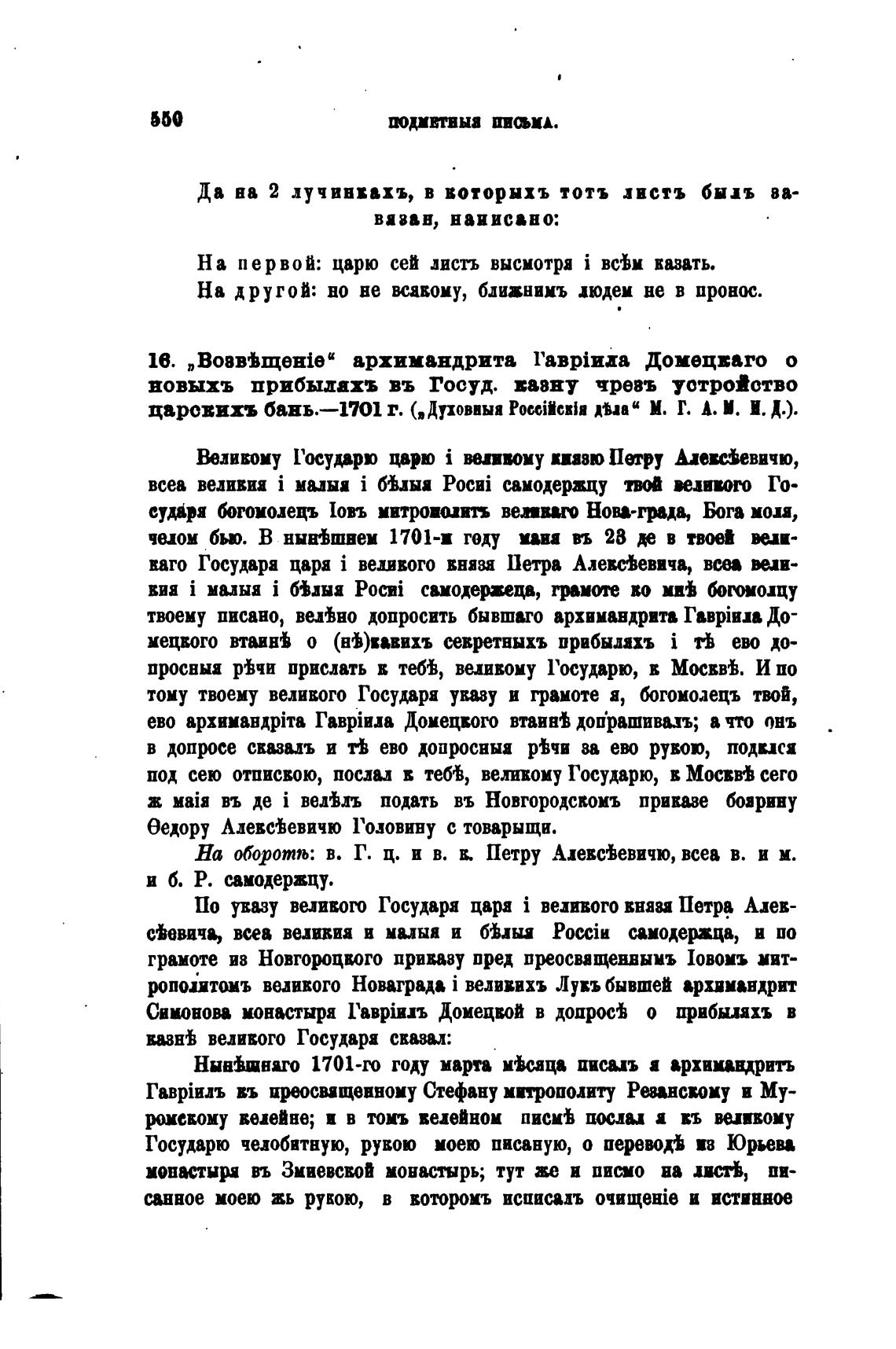 царсвихъ бань.—17О1 г. („Духоввыа РоссШсв1и д“аи М. Г. А. И. И. Д.).