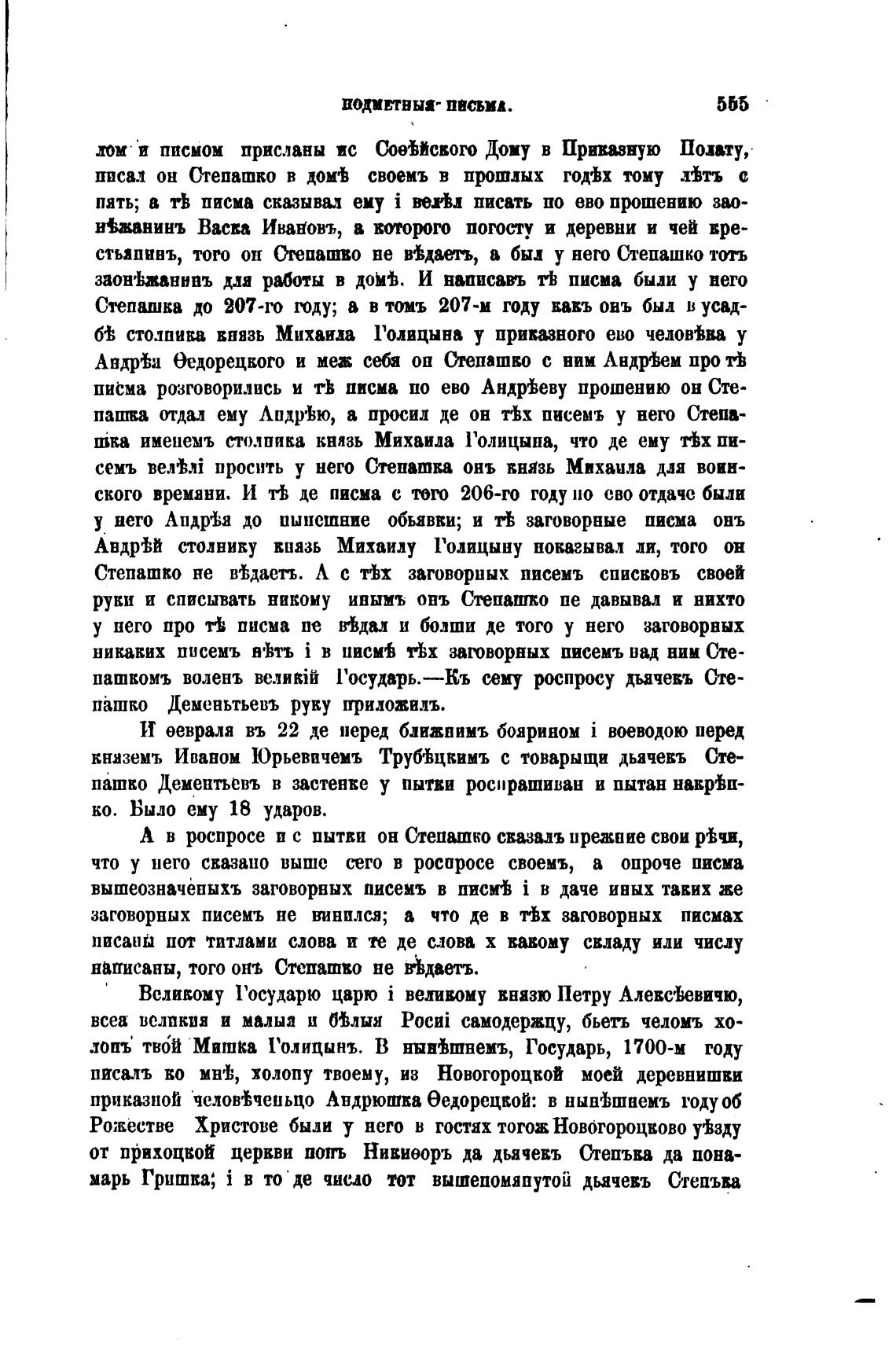 А в роспросе и с пытки он Степашко свазалъ прежние свои Р'ђчи,