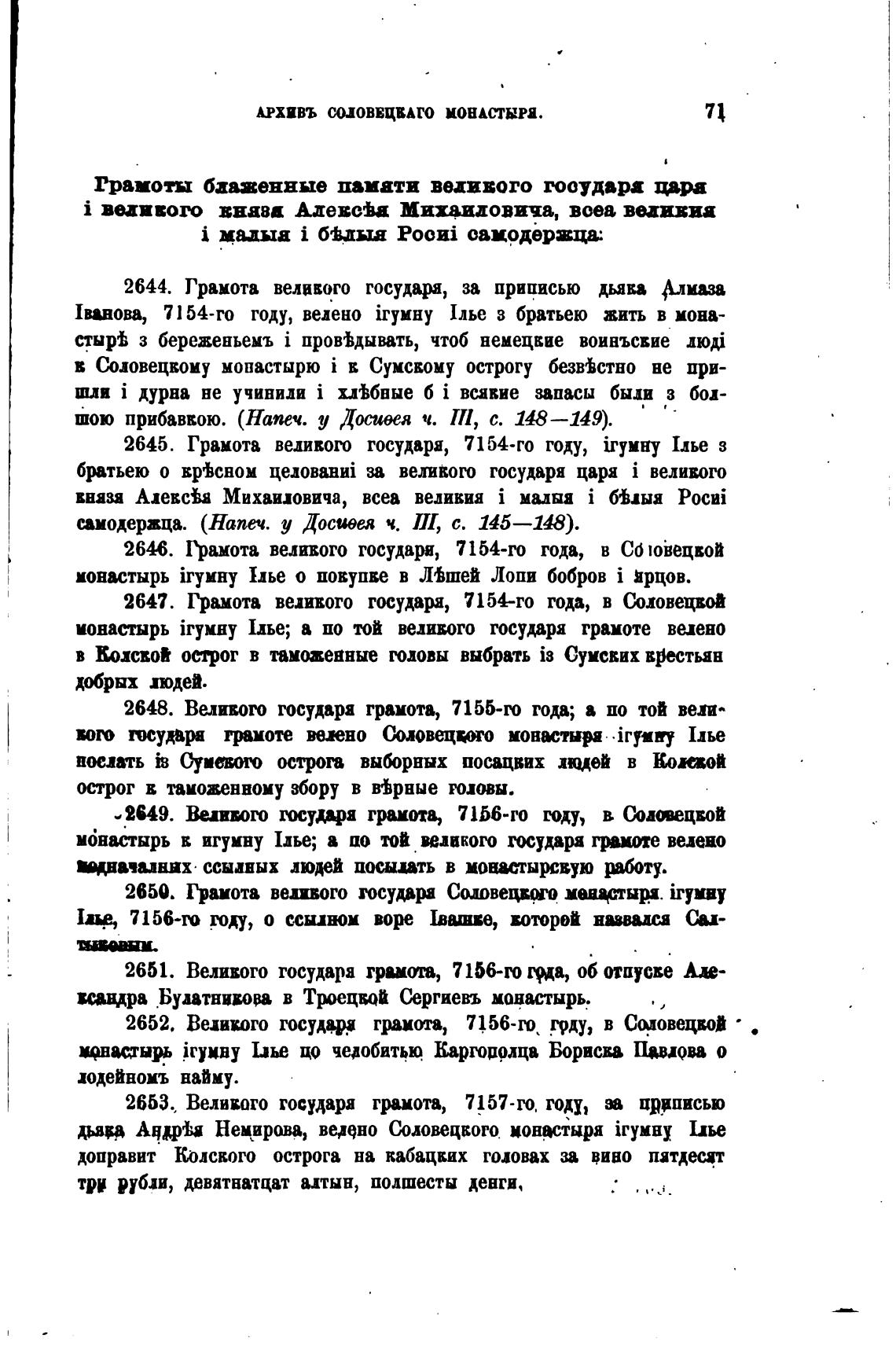 2647. 1)амота ведивого государя, 7154-го года, в Соловецвой
