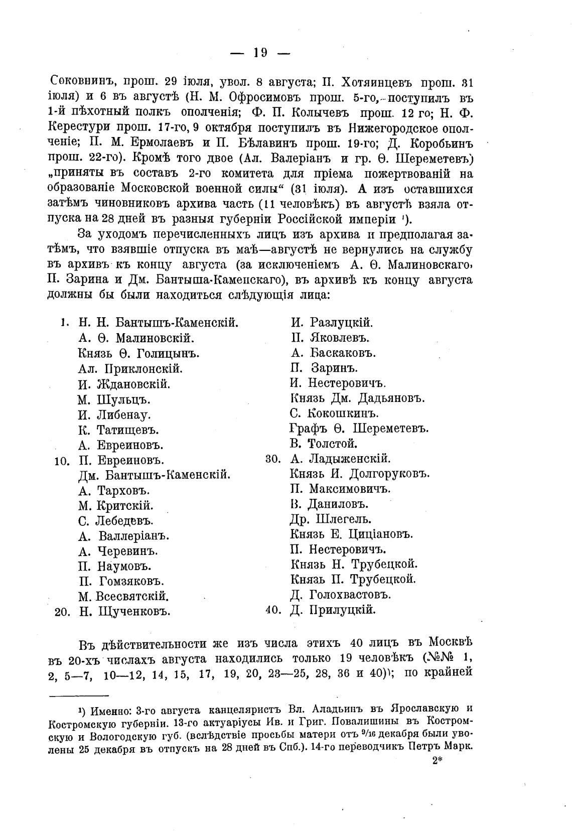 въ 20-хъ числахъ августа находились только 19 челов•Вкъ (УМ 1,
